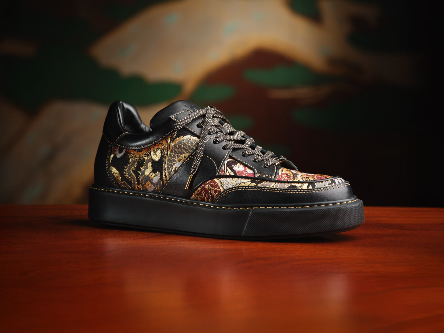 伝統工芸とのコラボから、全米アーティストのステージ衣装靴まで手がける業界の異端児。「これまでに無いものを創りたい」という発想から、日本文化を靴に表現。日本の着物文化を象徴する「西陣織」と、浅草で技術を磨いた「靴職人」が本気で取り組み「KAVKIMONO」をリリース。デザインはもちろん機能性・クオリティを高め、時代にフィットしたメイド・イン・ジャパンの本革スニーカーを届ける。