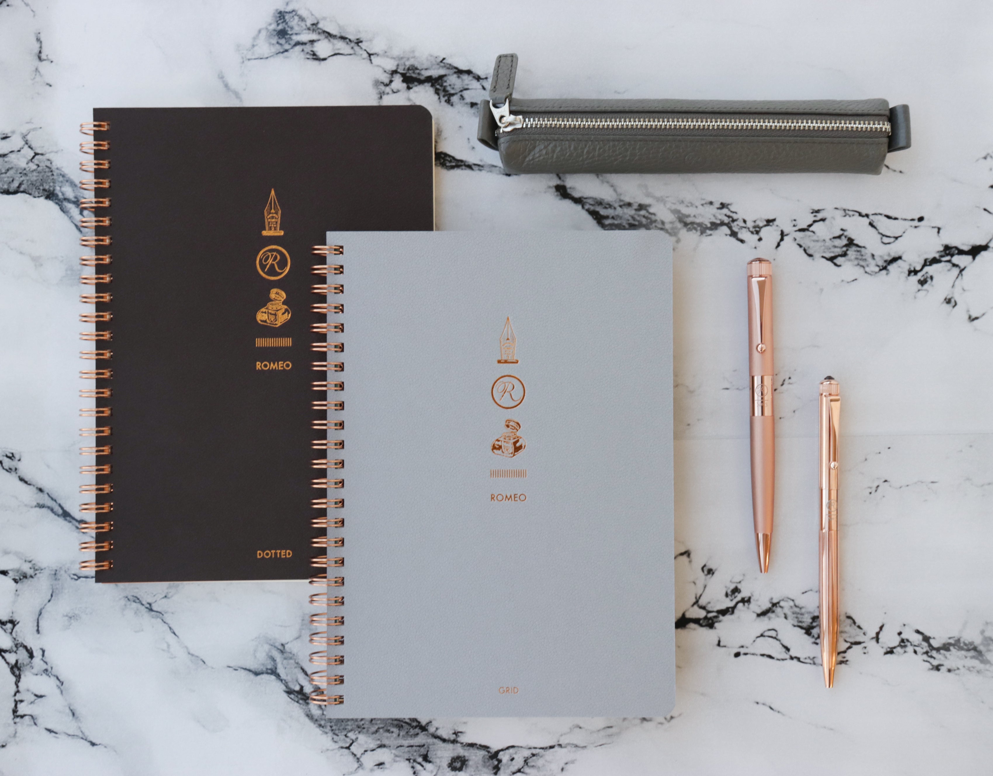 アイコニックなボールペン・「ROMEO No.3 」⾦属軸シリーズと「Wリングノート」のセット購入で、ボールペンリフィール「easy FLOW」をプレゼント。