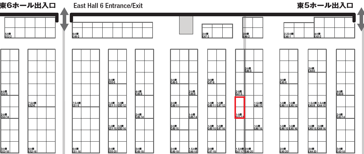 会場 :東京ビッグサイト 東展示棟5ホール又は6ホール E47-13(下図赤枠内)