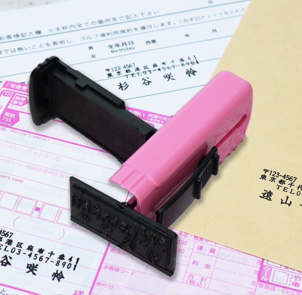 ある日のゴルフ場での出来事です。少し遅れ気味に到着した私は慌ててチェックインカウンターに向かいいつも通り名前、住所など記入作業行っていると、となりに判子業界で仕事する友人がやってきて、わずか1秒で用紙提出している光景を目にしました。「なにも書いていない・・・?」。不思議に思った私は彼にたずねてみると彼が手に持っていたのは旧型の住所スタンプでした。「これはみんなが便利になる・・・」。一瞬でそう感じた私は「これを売らせて欲しい」とお願いしました。このようなスタンプは会社に置いてあるカタログに載ってはいるものの日常で目に触れることが少ない事務用品でした。このスタンプの「使い方」「使う場所」を提案すれば必ず国民の便利グッズとなりニュースタンダードとなる!と考え、この度らくぽんを販売することになりました。
