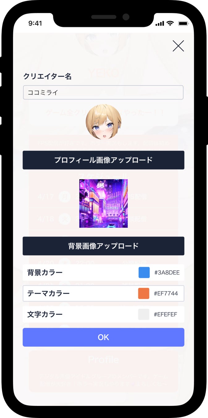 好きな背景画像をアップロードしたりテーマカラーを自由に設定できます。リンクやプロフィールの配置もドラッグ&ドロップで変更できるので、誰でも簡単にオリジナリティに溢れたプロフィールページを作成できます。