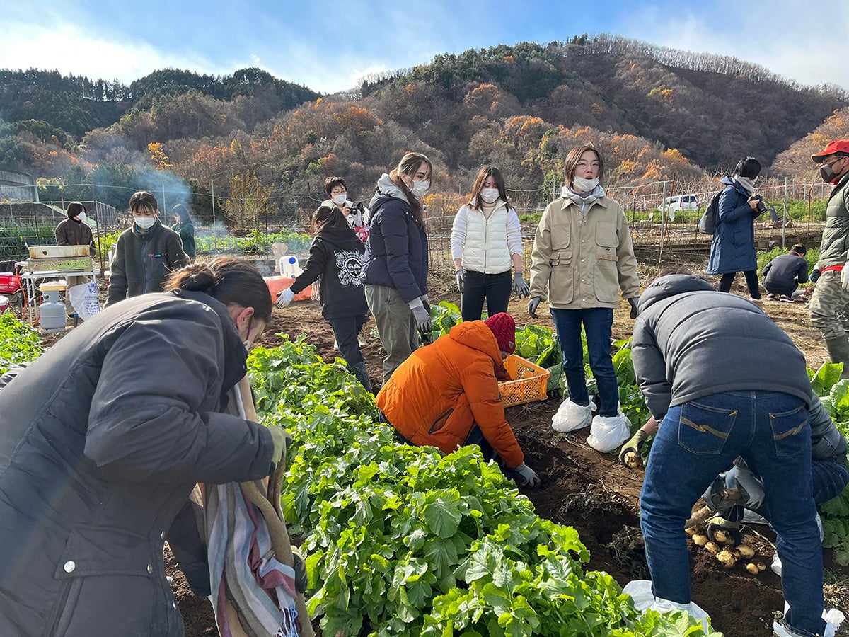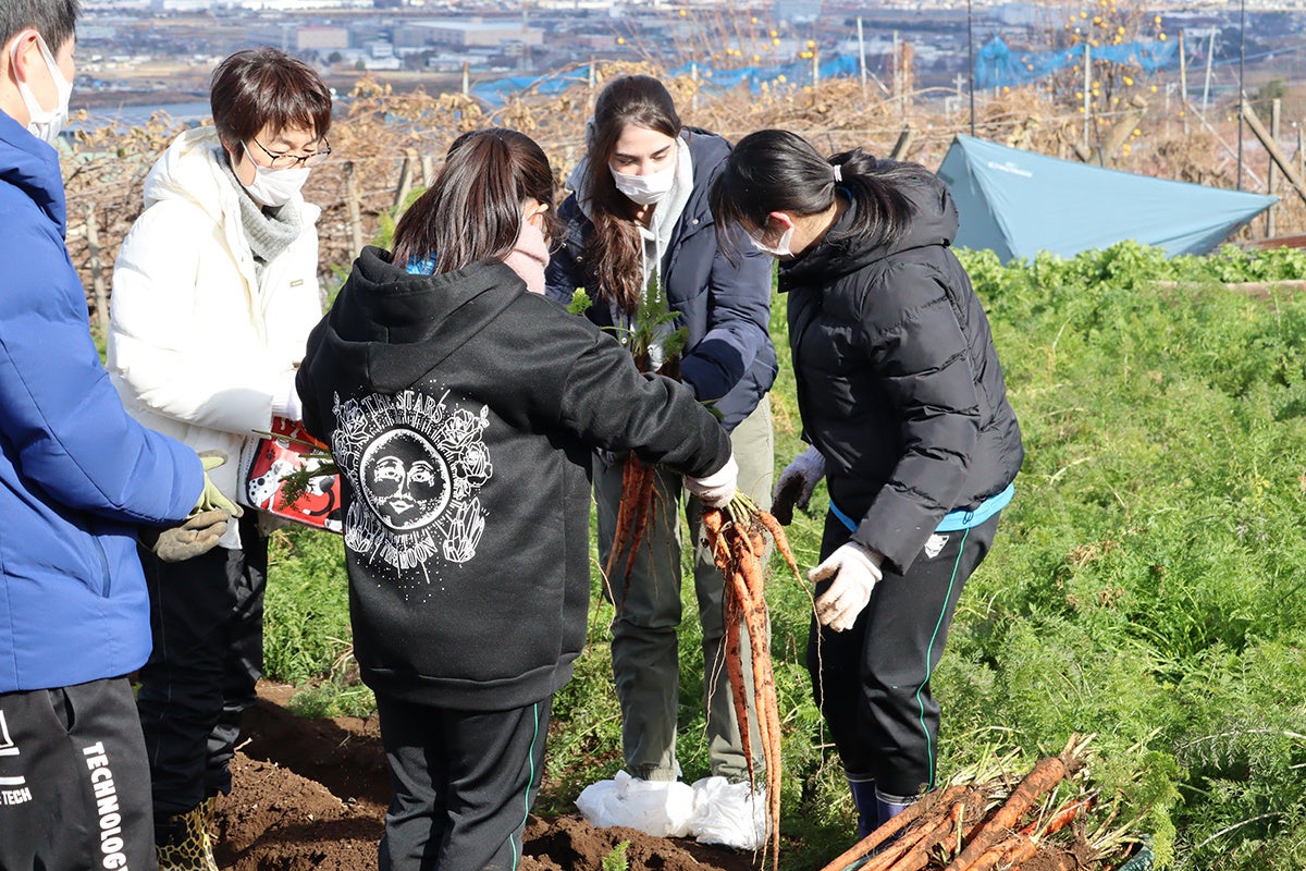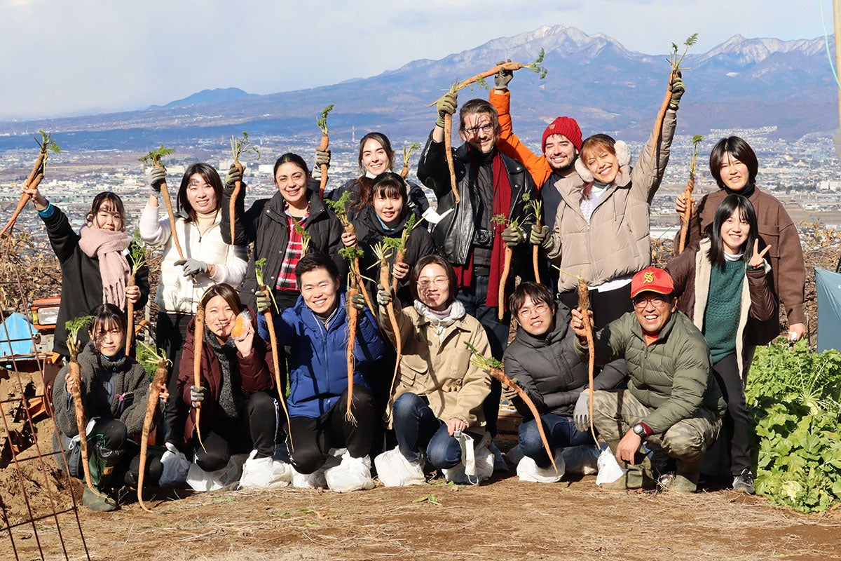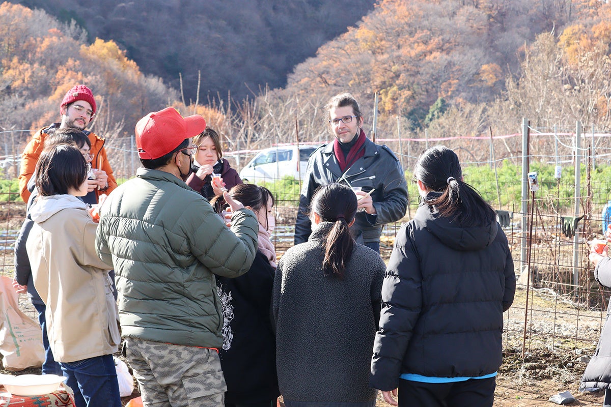 2022年12月18日(日)、山梨県市川三郷町にて外国出身の方を対象とした「のっぷい農作物」収穫体験イベントを開催しました。地元高校生がガイドとなり、日本に赴任している外国人や留学生の方に「のっぷい」の魅力を英語でナビゲート。のっぷい農産物のテロワール見学や収穫体験をしたあとは、採れたてののっぷい農産物をその場で調理・試食し、その魅力や自国との環境の違いなどを外国人の方に語っていただきました。