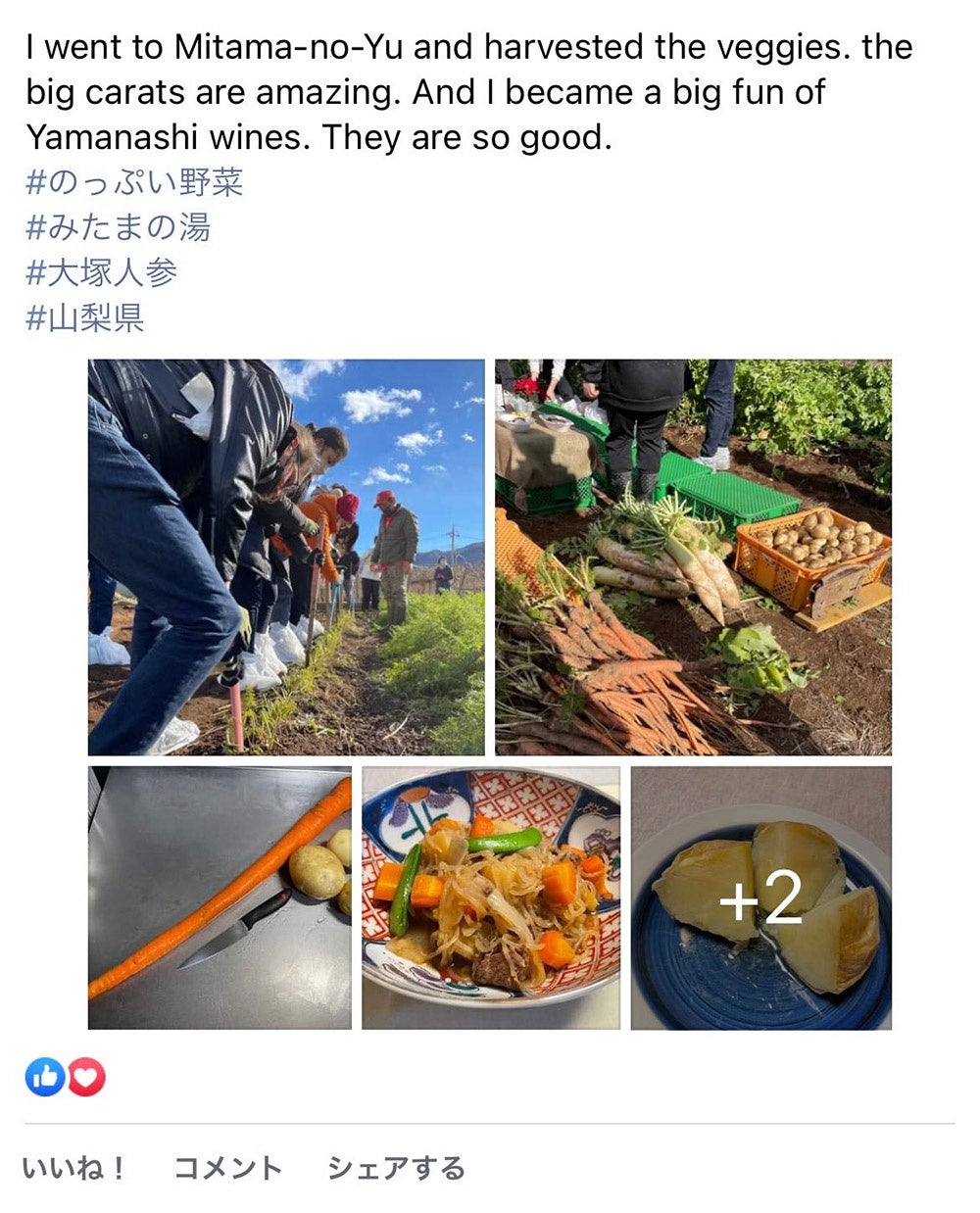 参加者の方には普段なかなかできない収穫体験や、青空のもとでの試食会を楽しんでもらうことができました。収穫したのっぷい農産物は後日、調理してSNSで発信してくれるそうです。