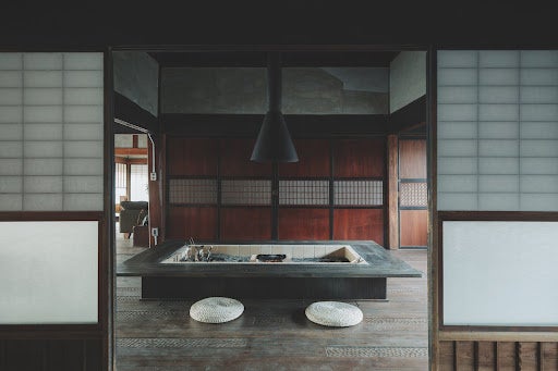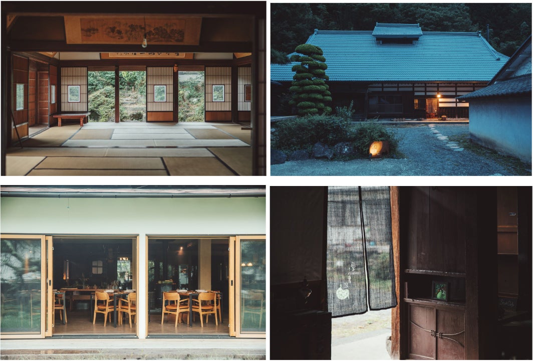 八ヶ岳南麓の自然の恵みに抱かれた江戸時代の趣ある一軒家がレストラン。斜め前に建つ築130年の古民家が宿泊施設となっています。古民家は、かつて寺子屋だった場所をリノベーションしたものです。庭には「筆塚」があるため、内装は墨をイメージする色調を大切にしています。机の引き出しには、大切な人への手紙などをしたためられるアイテムが揃っています。お料理だけでなく、歴史ある空間やここでの時間、ここまで辿り着く時間も含めて楽しんで欲しいという「愛と胃袋」の想いが詰まったあたたかくも洗練された空間です。