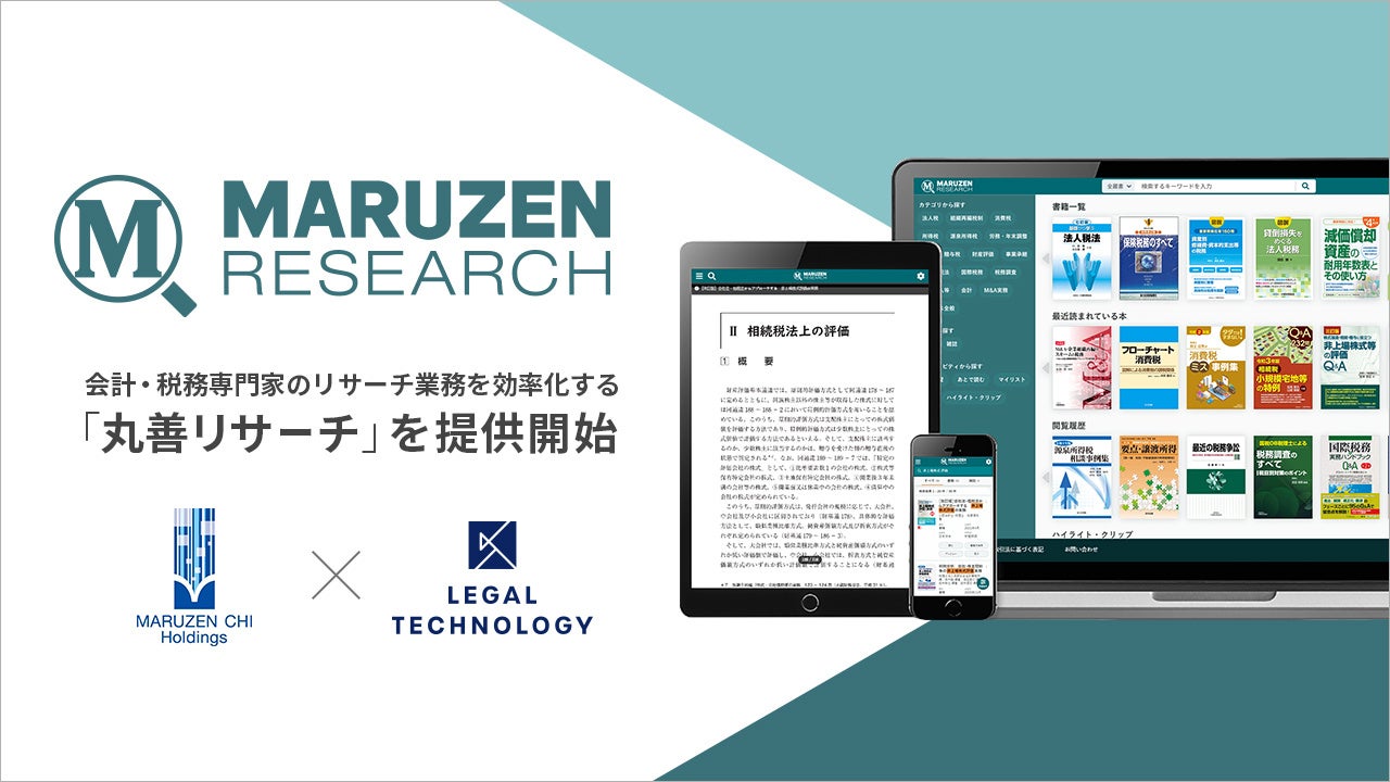 丸善CHIホールディングス株式会社(本社:東京都新宿区、代表取締役社長:五味英隆、証券コード:3159)の子会社である株式会社丸善リサーチサービスと株式会社Legal Technology(本社:東京都千代田区、代表取締役CEO:二木康晴)は、会計・税務専門家のリサーチ業務を効率化すべく、会計・税務・M&A領域の専門書籍を横断的に検索・閲覧できるリサーチシステム「丸善リサーチ」を、2023年10月2日(月)にリリースしました。