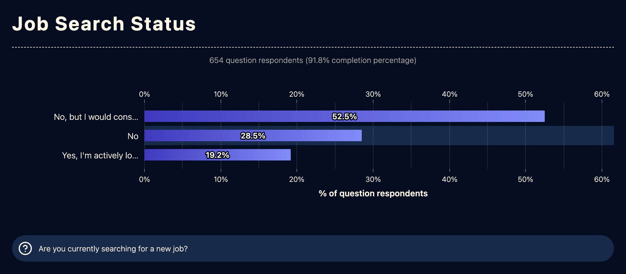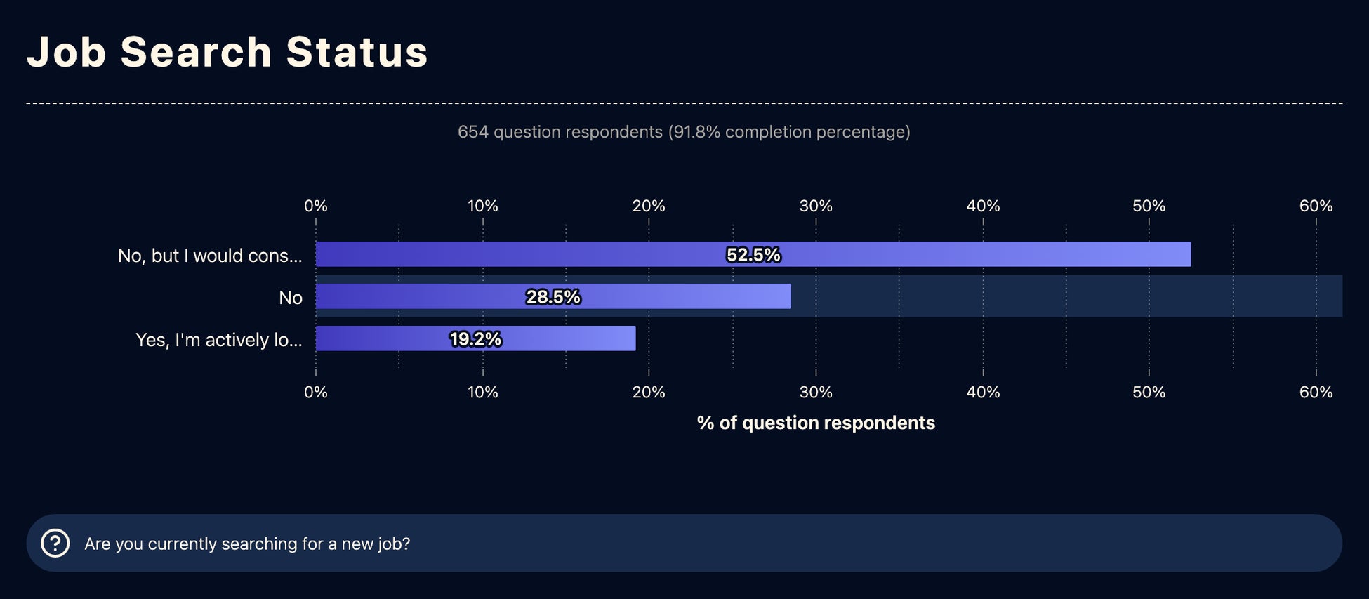 転職を希望している回答者は、昨年より11%増加し19%に。
