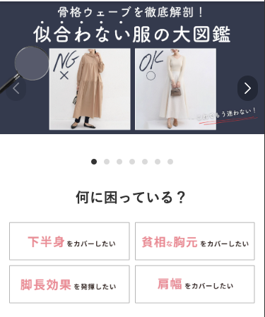 調査結果に出たように、骨格ウェーブの女性の方は、上半身よりも下半身に問題意識を抱えている方が多く、アパレル関連の企業様は、特に、骨格ウェーブのお客様に対しては、下半身ならではの問題を解決できそうなパンツやスカートの種類を増やしたり、オフラインの実店舗様では下半身に問題意識を抱えている可能性が高いことを想定した接客体験、オンラインのECショップでは骨格ウェーブのお客様には下半身ならではの問題があることを想定したUI/UXを設計してみると良さそうです。