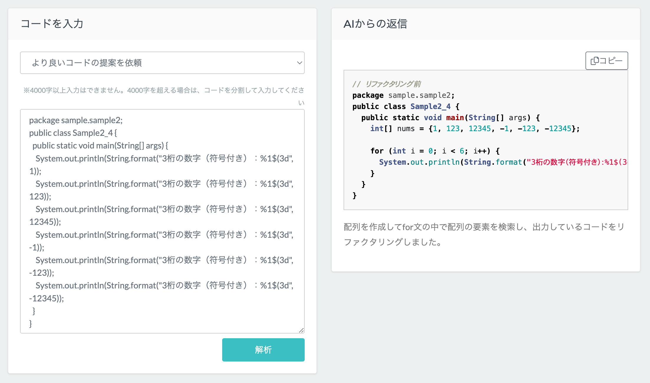 ・プログラミングの添削やバグの修正をすべてAIが対応し、学習者のフォローを行います