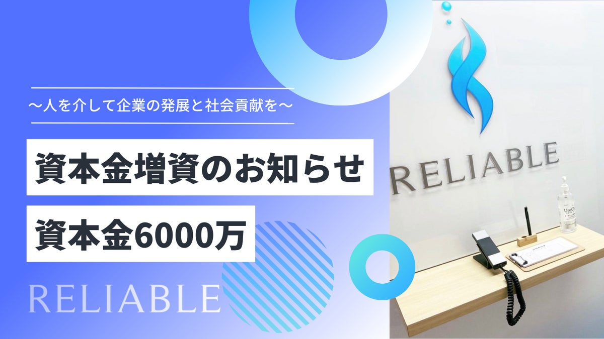 株式会社リライアブル(本社:東京新宿区、代表取締役:守脇 賢胤)は、2023年1月11日付けにて、資本金増資を実施いたしましたので、ここにお知らせいたします。