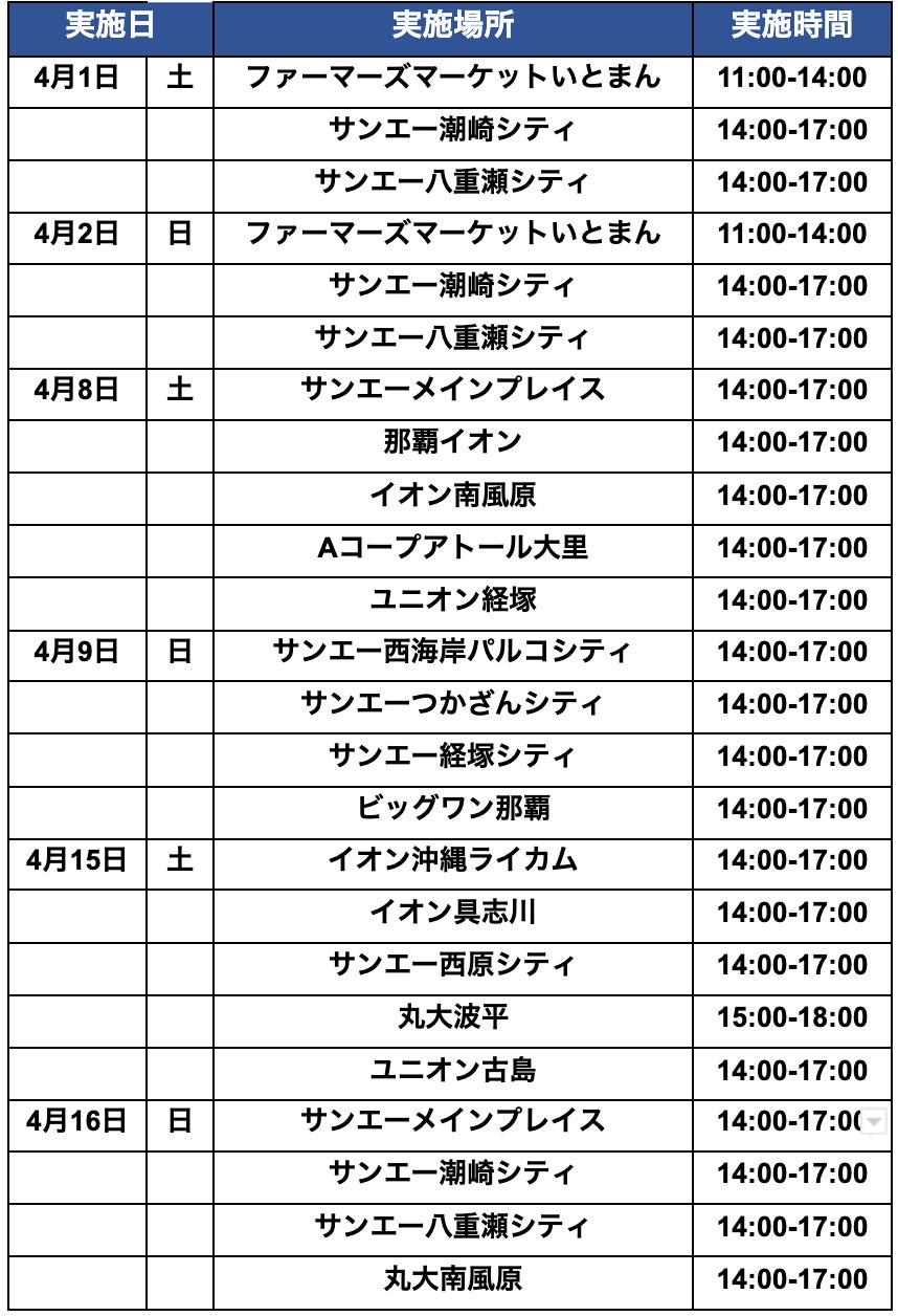 イベント概要:4月1日(土)より無料でお配りする謎の「シン泡盛」の種明かしや試飲提供を含め、4月下旬に発売を予定している新商品について発表いたします。新商品の発表後、イベント会場でラジオの公開生放送も行います。ゲストアーティストライブをはじめ様々な面白いコンテンツをご用意した番組を放送する予定です。