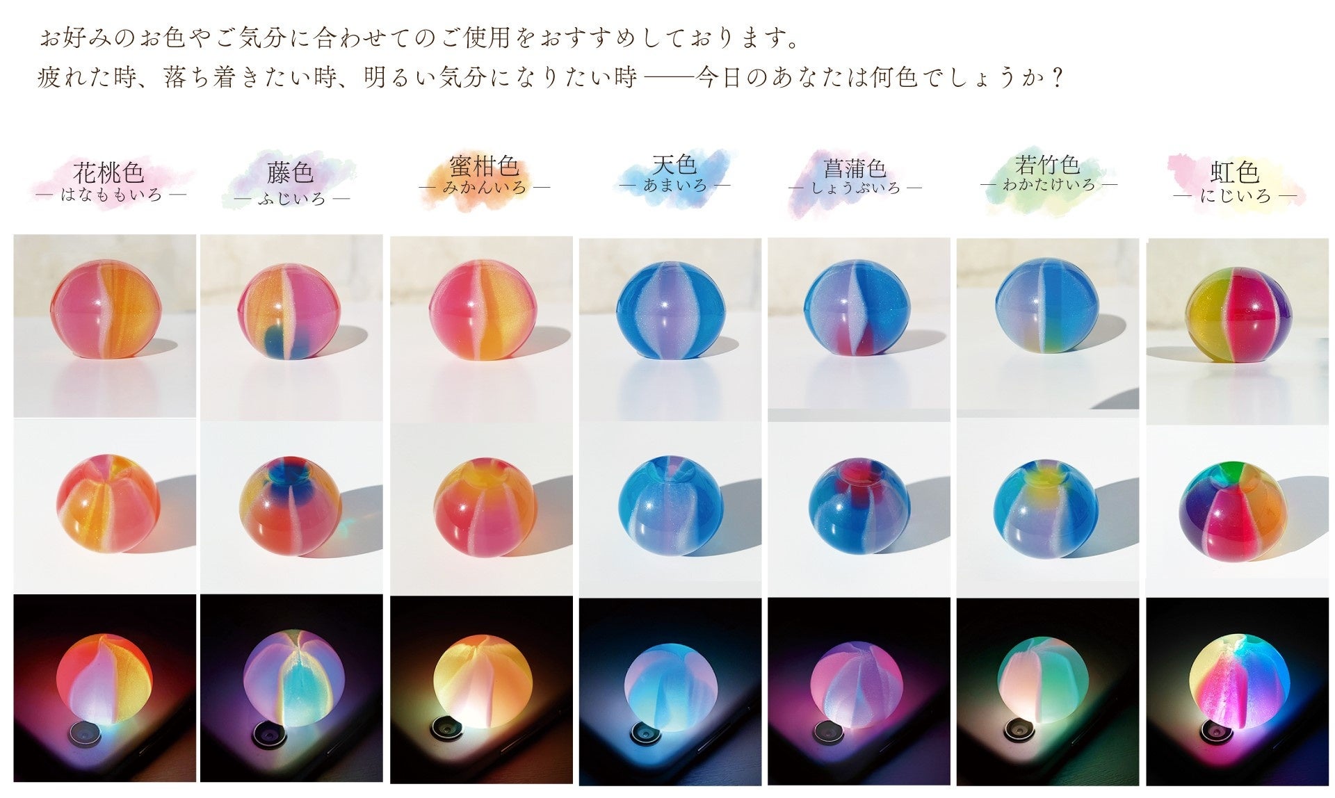 綺麗な色で丸く可愛らしいフォルムのアイテムをスマホライトの上に乗せるだけで綺麗な光をお楽しみいただけるアイテムです。