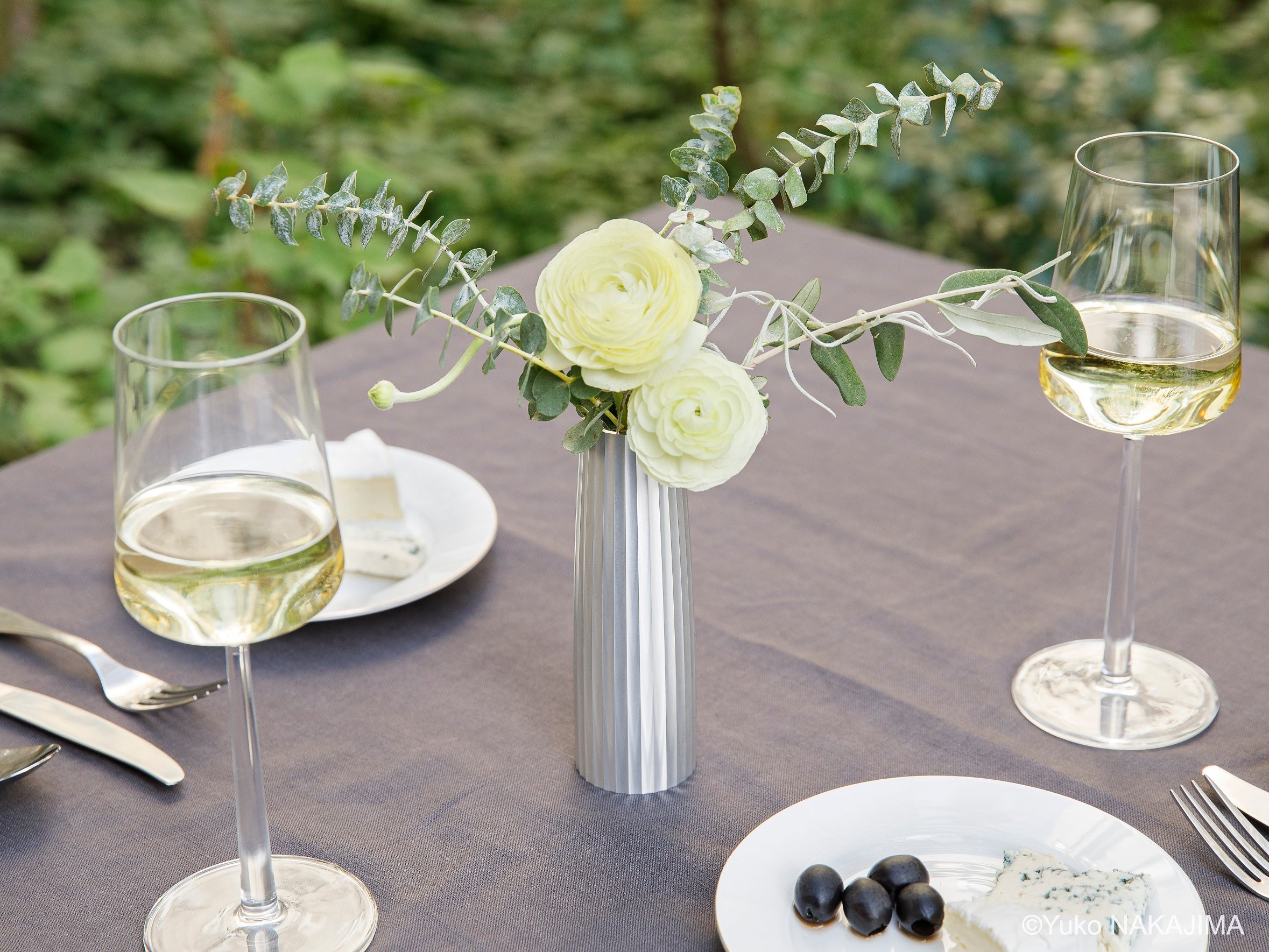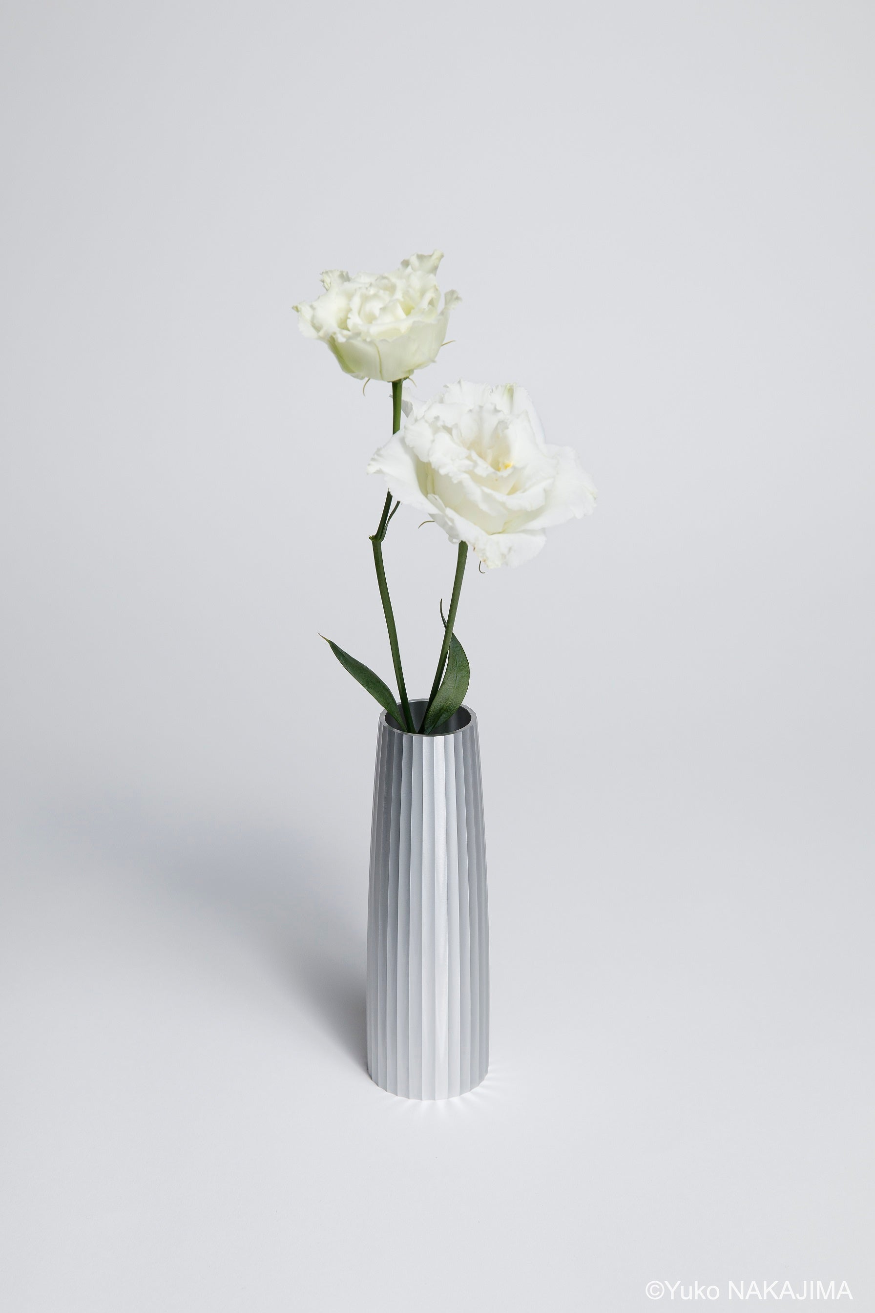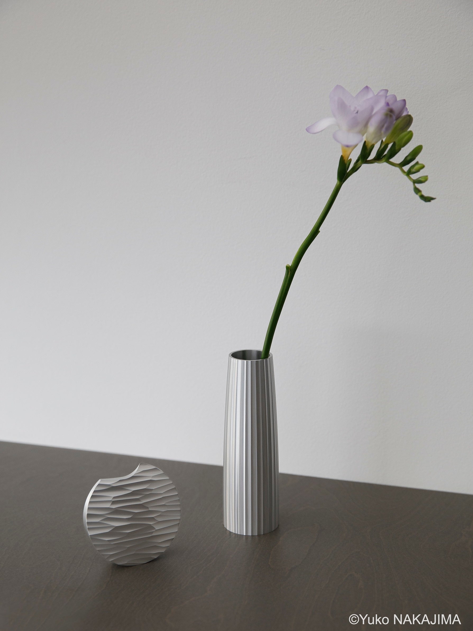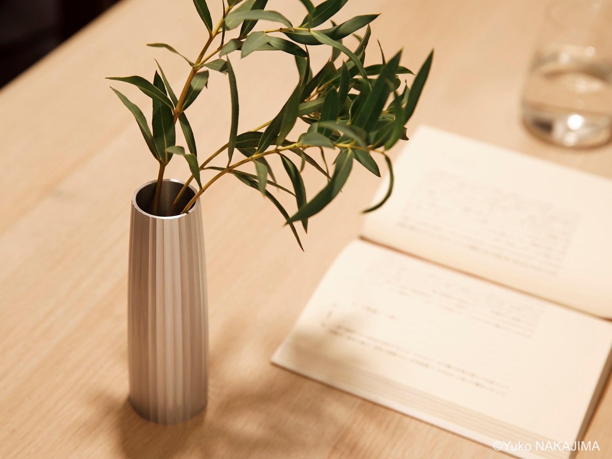 「OOPARTS-002(オーパーツゼロゼロニ)」はその精神を継承し、フルーティングのような切削痕を持つようにアルミを削り出すことで、古代の柱では彫刻されていた植物の代わりに実際に飾られる花々の姿を際立たせます。