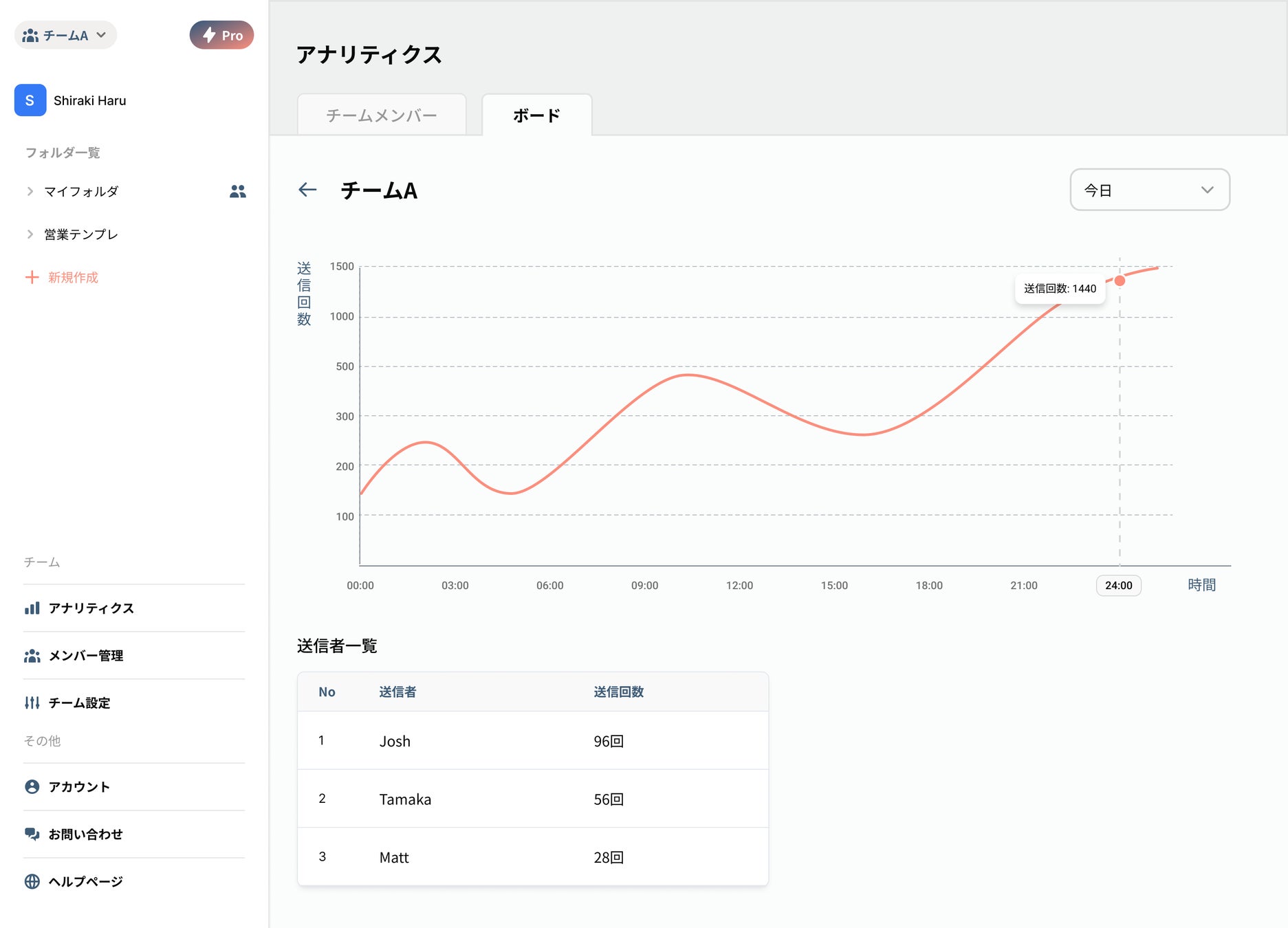 メール・LINEなど全てのSNSで登録した資料や定型文をワンタップで送信でき、入力の手間を省略できます。さらに、トップセールスのノウハウを元にしたフローを作成することでチーム全体の効率的な営業を実現できます。