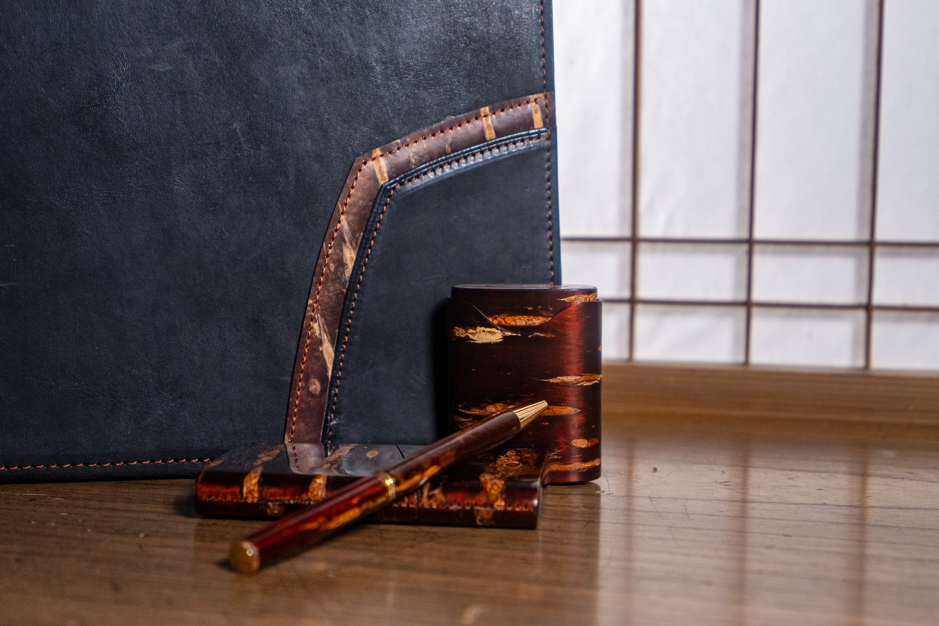 ・素材(全て日本製):樺細工、ベジタブルタンニンレザー、ピッグスエード(内地)、真鍮(留め具)