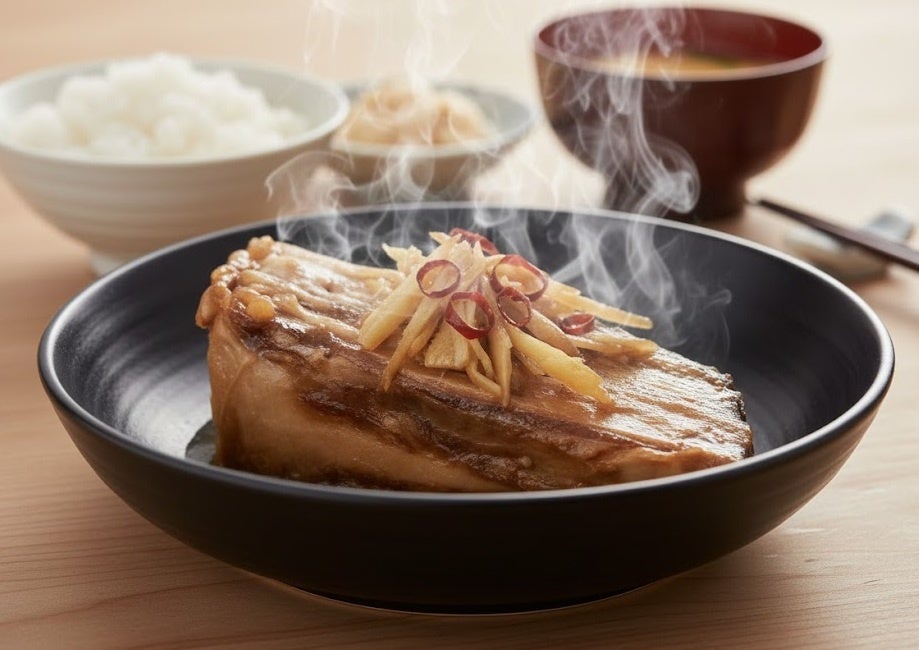〇素材の味を引き出すため、シンプルに醤油をベースに生姜と唐辛子でさっぱりと甘辛く煮つけました。