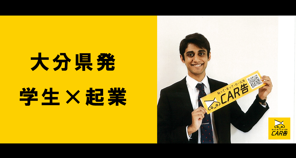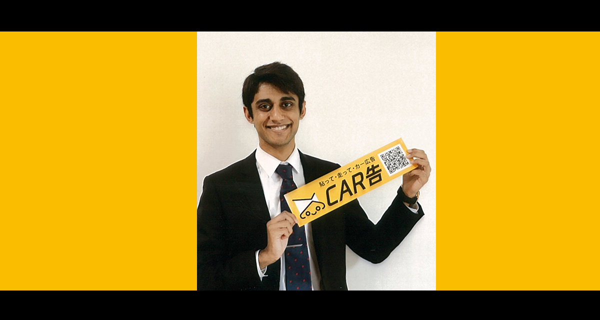 「今通ったの、ランボルギーニだよ!」。シャルマと過ごしている中で車の話がでるのは日常茶飯事だ。そんな車好きなシャルマはインドで生まれた後、群馬県で小中高を過ごした。その後入学したAPUでは車好きな人たちと車の話題についての話が絶えない日々を過ごしていた。そんな中、CAR告を始めたきっかけともなった、日本での車の維持費が高く、メンテナンスコストがかかるという悩みに直面した。実際に大分県で市場調査を行った結果、約7割の人が維持費に困っていることがわかった。この問題を解決するため、自家用車などにスポンサーとなる事業主を見つけ、広告を車に貼ることで費用を賄うという新たな広告サービスの提供に着目した。半年間、アイデアを練りながらYUKEMURI Startup Summitなどに参加したのち、株式会社ASOの代表である宮井さんと出逢った。様々な人からの支援のもと、ついに2021年5月にCAR告の事業がスタートした。