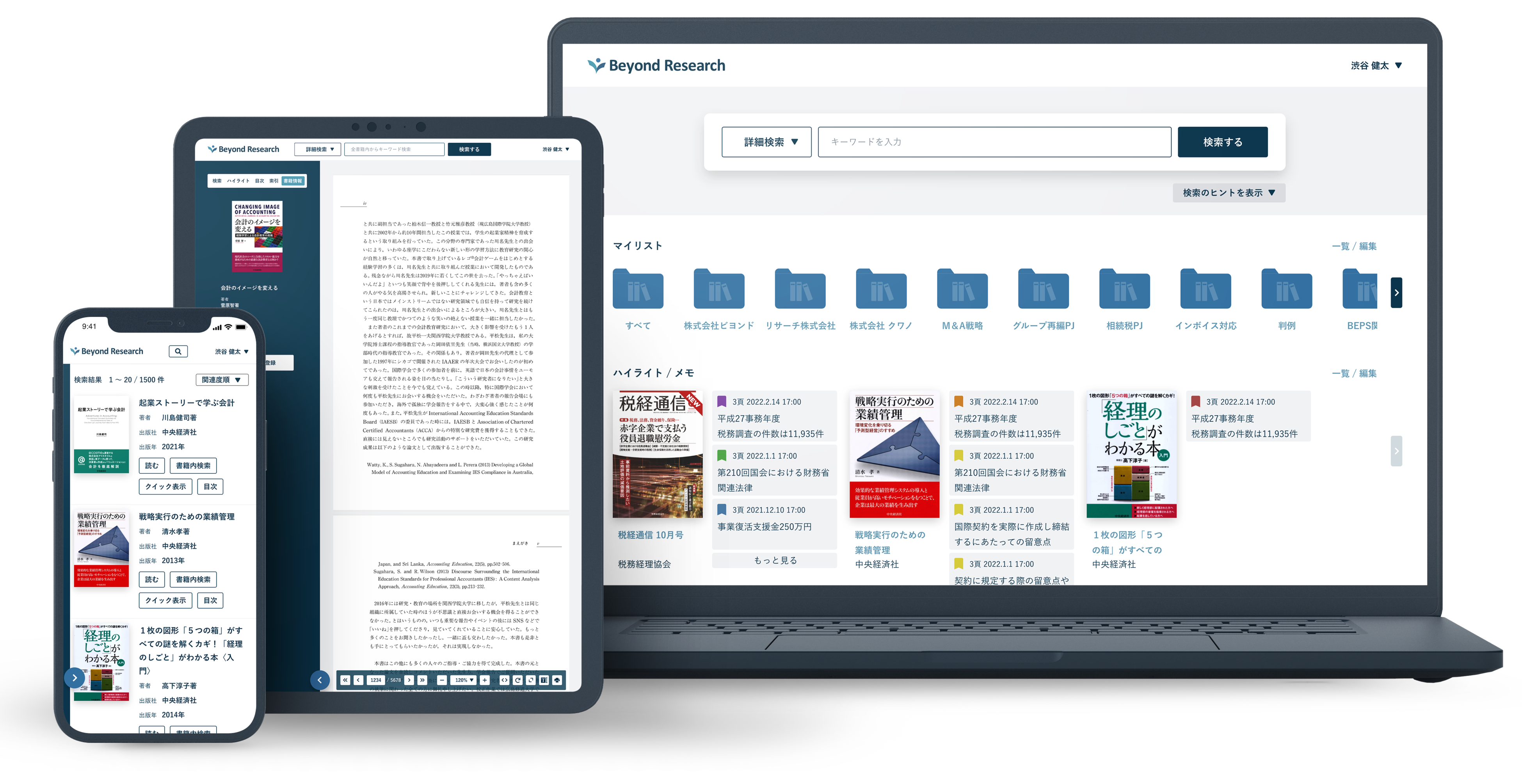 Beyond Researchは、経験豊富な現役、現場の税理士とともに開発し、実務に必要な機能、ユーザーインタフェースを備えた税務・会計業務に携わる方々のための専門書籍サービスです。