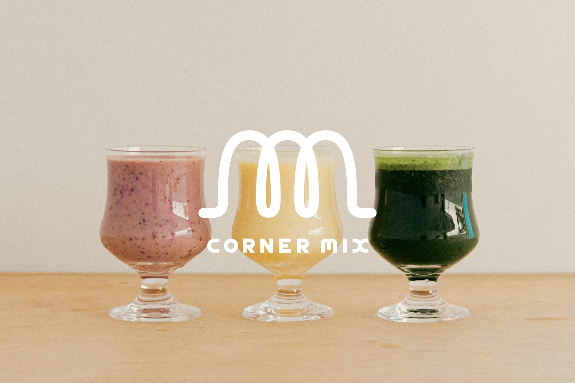 「まぜると、きっとうまくいく!」がコンセプト。CORNER MIXは、まぜること“MIXすること”によって、何か想像を超えるものができる、何か新しいことを好きになる、そうしたきっかけをつくることを目指す場です。ひと、もの、食物をまぜることを通じて「地域、食、カルチャー」に気持ちの良い循環を生み出すオープンなスタンド。定番のミックスジュースから、八百屋で廃棄になるフードロス野菜をミックスジュースにする「レスキューミックス」など、おとなもこどもも美味しく楽しい、ミックスジュース専門店です。