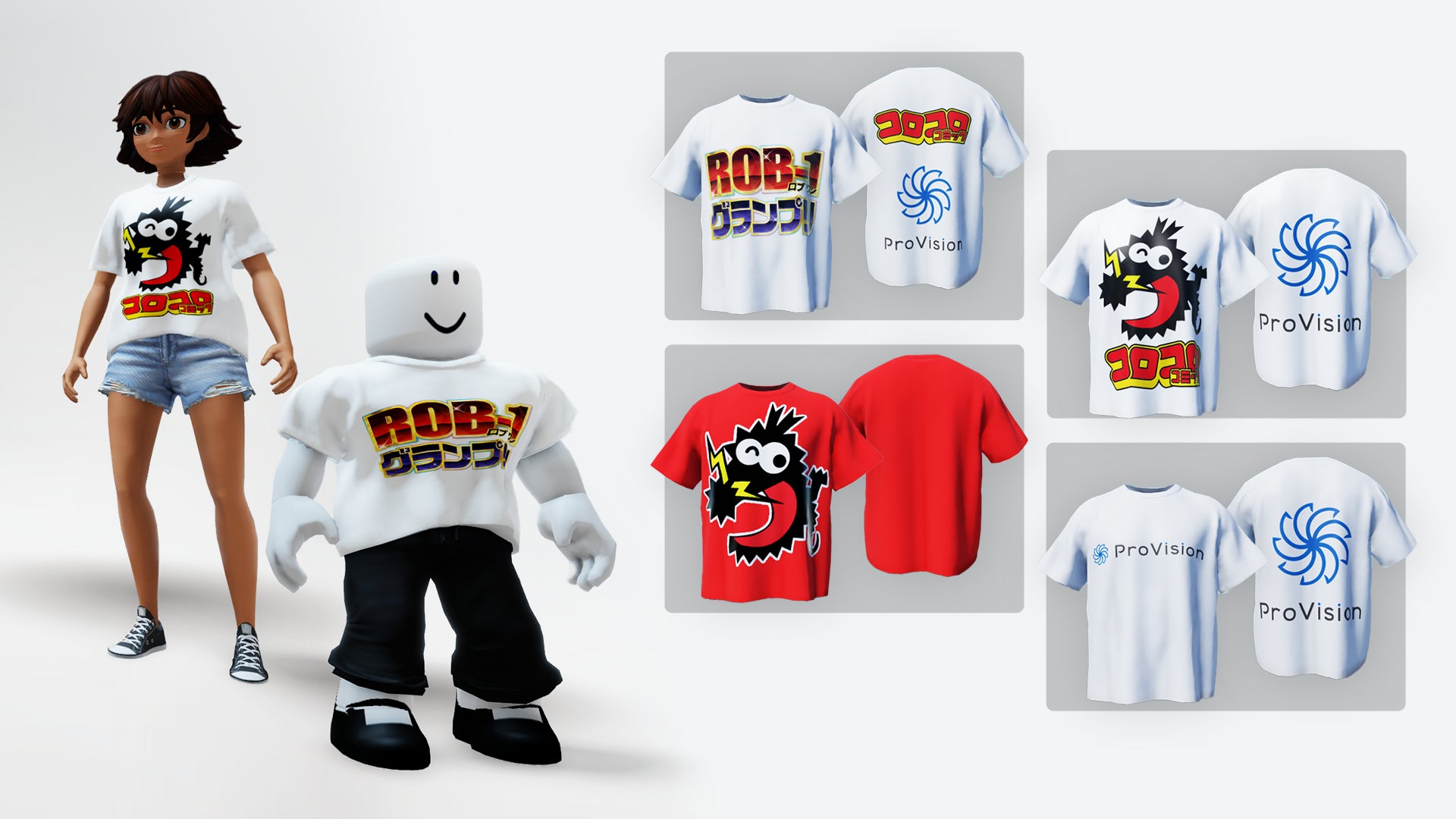 GeekOut株式会社(本社:東京都港区、代表取締役:田中創一朗、以下当社)は、株式会社ProVisionが主催する、2023年2月15日発売のコロコロコミック(小学館発行)にて展開された「ROB-1グランプリ」へのサポートの一環として、限定コラボTシャツをRobloxにて制作し、販売開始しました。