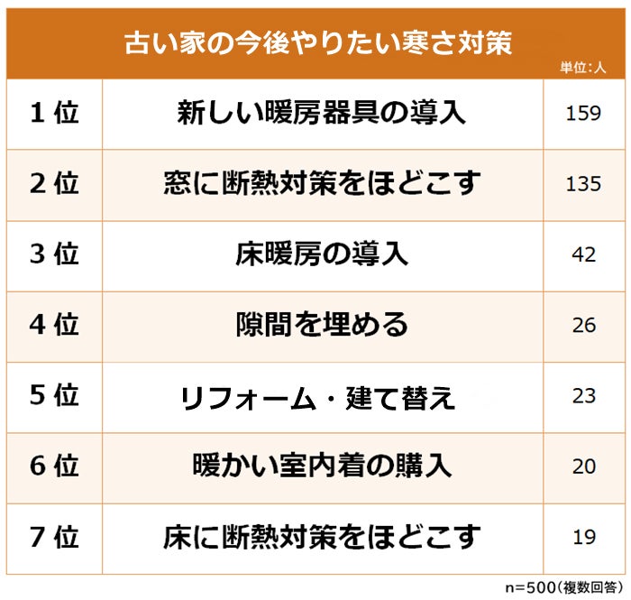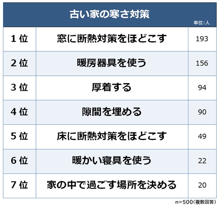【古い家の寒さ対策ランキング】男女503人アンケート調査