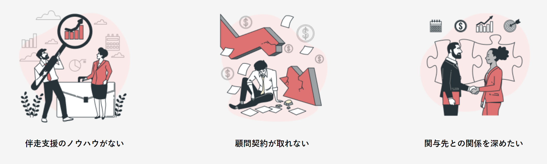伴走支援のノウハウがない、顧問契約が取れない、関与先に信頼されない、そんな悩みを解決