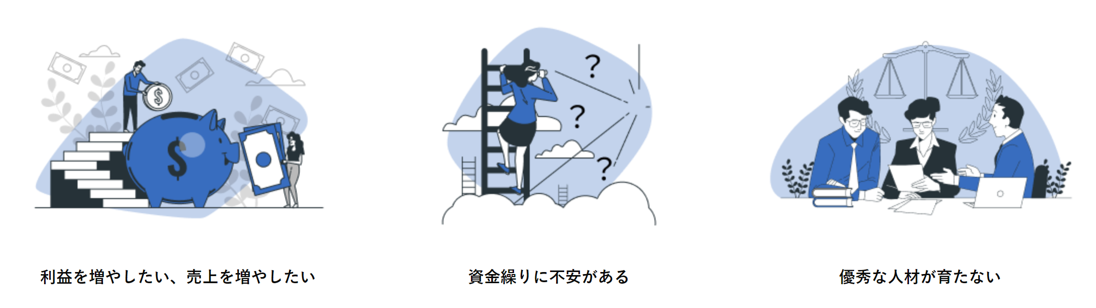 売上や利益を増やしたい、資金繰りに不安がある、人材育成が進まない、そんな悩みを解決