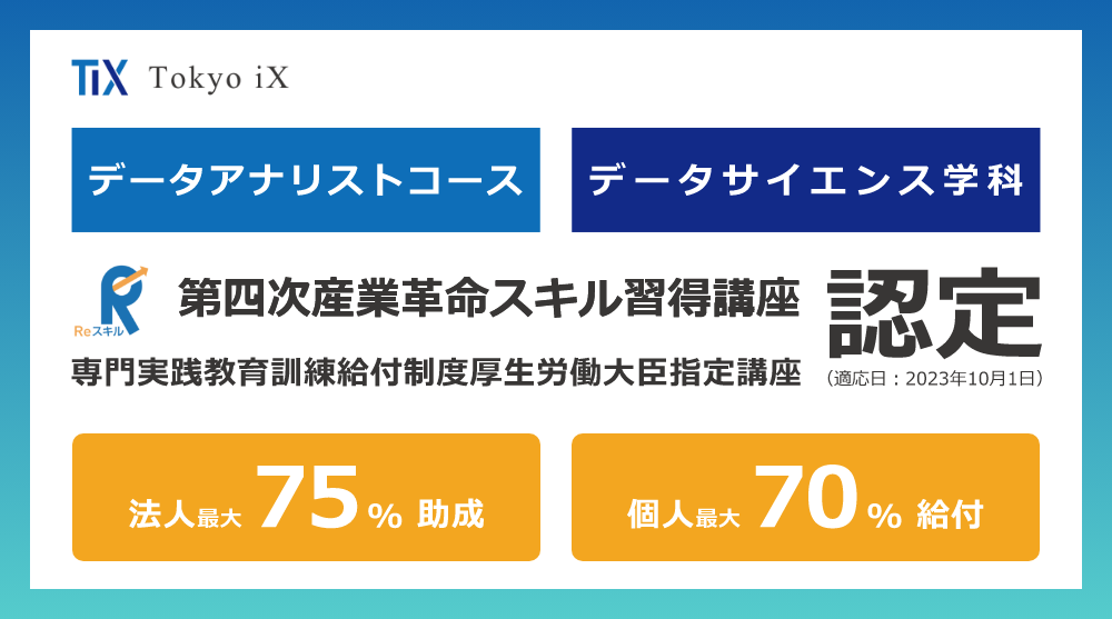Tokyo iXのデータ人材育成2コースが助成金対象講座に