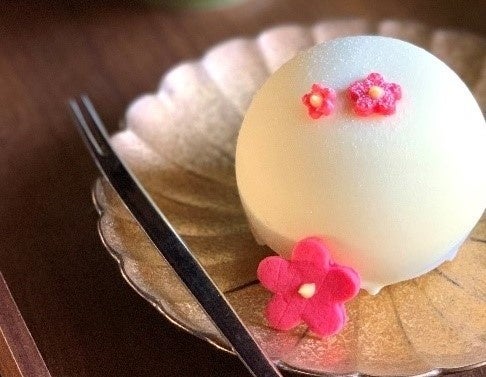 チーズムースの中に梅ジャム入れ、 上からホワイトチョコをかけて 雪がかぶった梅をイメージしています。 [料金] 1,500円(抹茶付き)