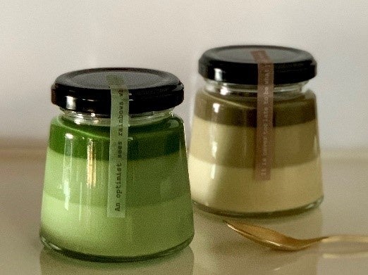 上から濃茶、少し濃目、薄め3層の抹茶とほうじ茶のパンナコッタ。 [料金] 1,000円(抹茶or梅茶付き)