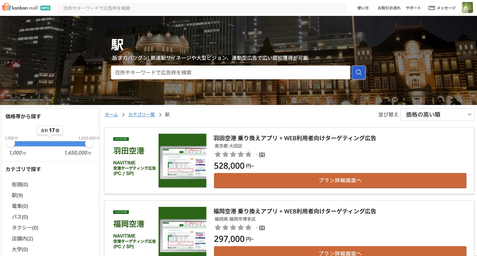 ■「価格」や「カテゴリ」でスムーズに広告媒体を比較・検索