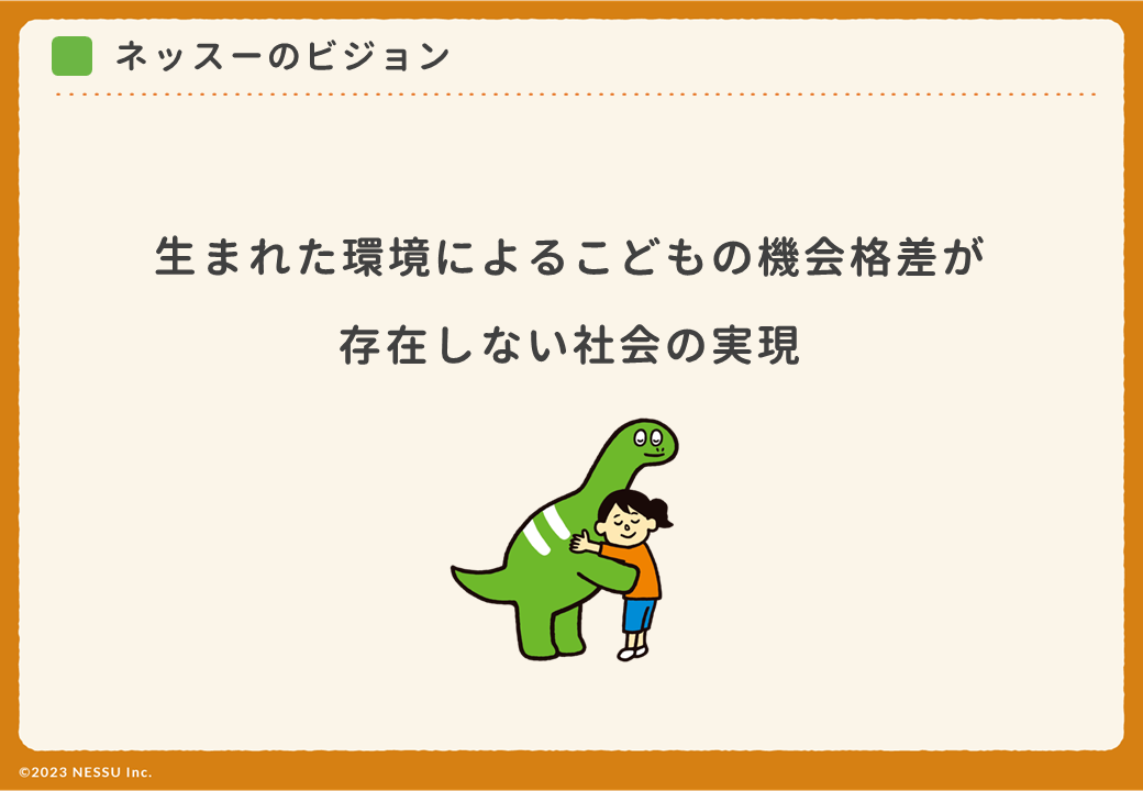 「こどもの機会格差の解消」をビジョンに活動するネッスーは、2022年度に実証実験を行ったフードバンクシステムを本格稼働させるとともに、地域の企業・団体と連携し、こどもたちがさまざまな体験をすることができる場を立ち上げ、食や体験の格差に苦しむこどもがいない、やさしい社会を実現します。