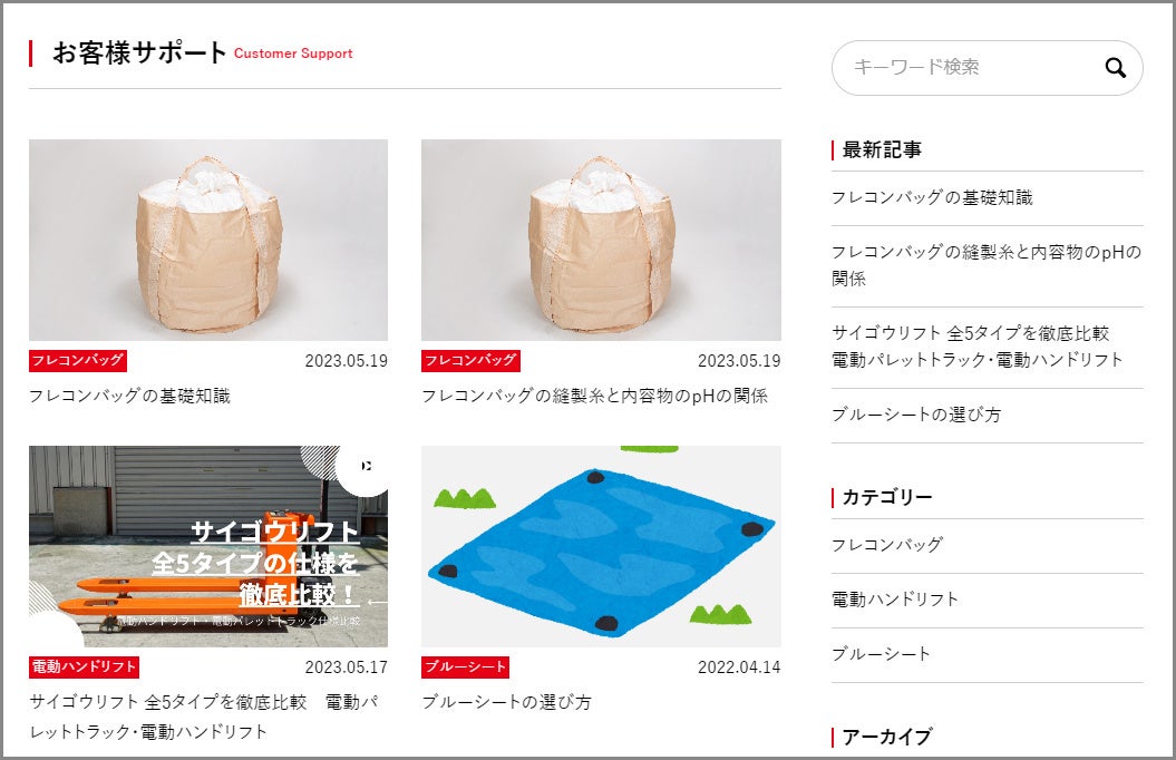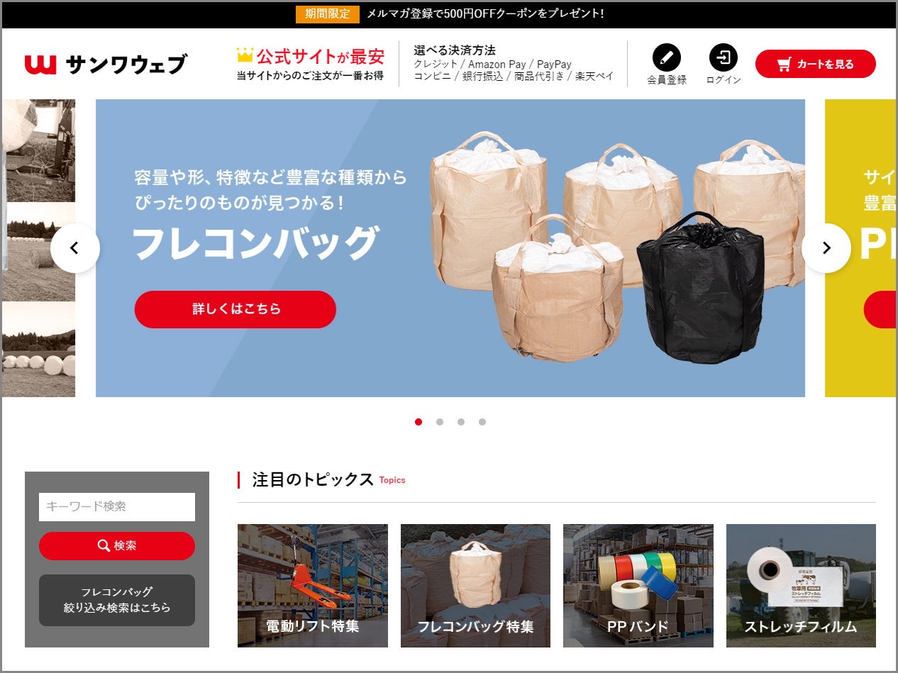 サンワウェブの強みでもある幅広い商品展開をしているフレコンバッグを、カンタンに検索することが出来る「フレコンバッグ専用検索ボックス」を設置しました。