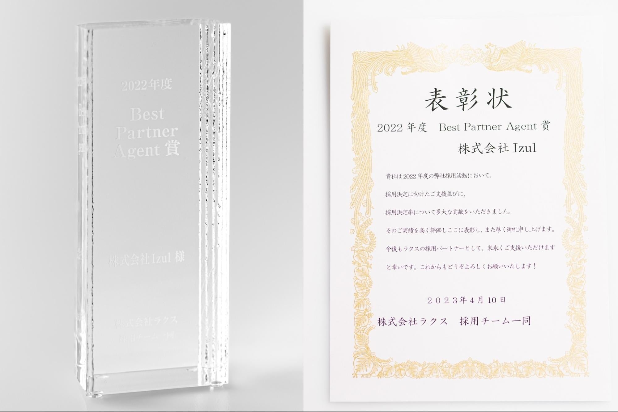 株式会社Izulが、株式会社ラクス様より「ベストパートナーエージェント賞」を受賞しました