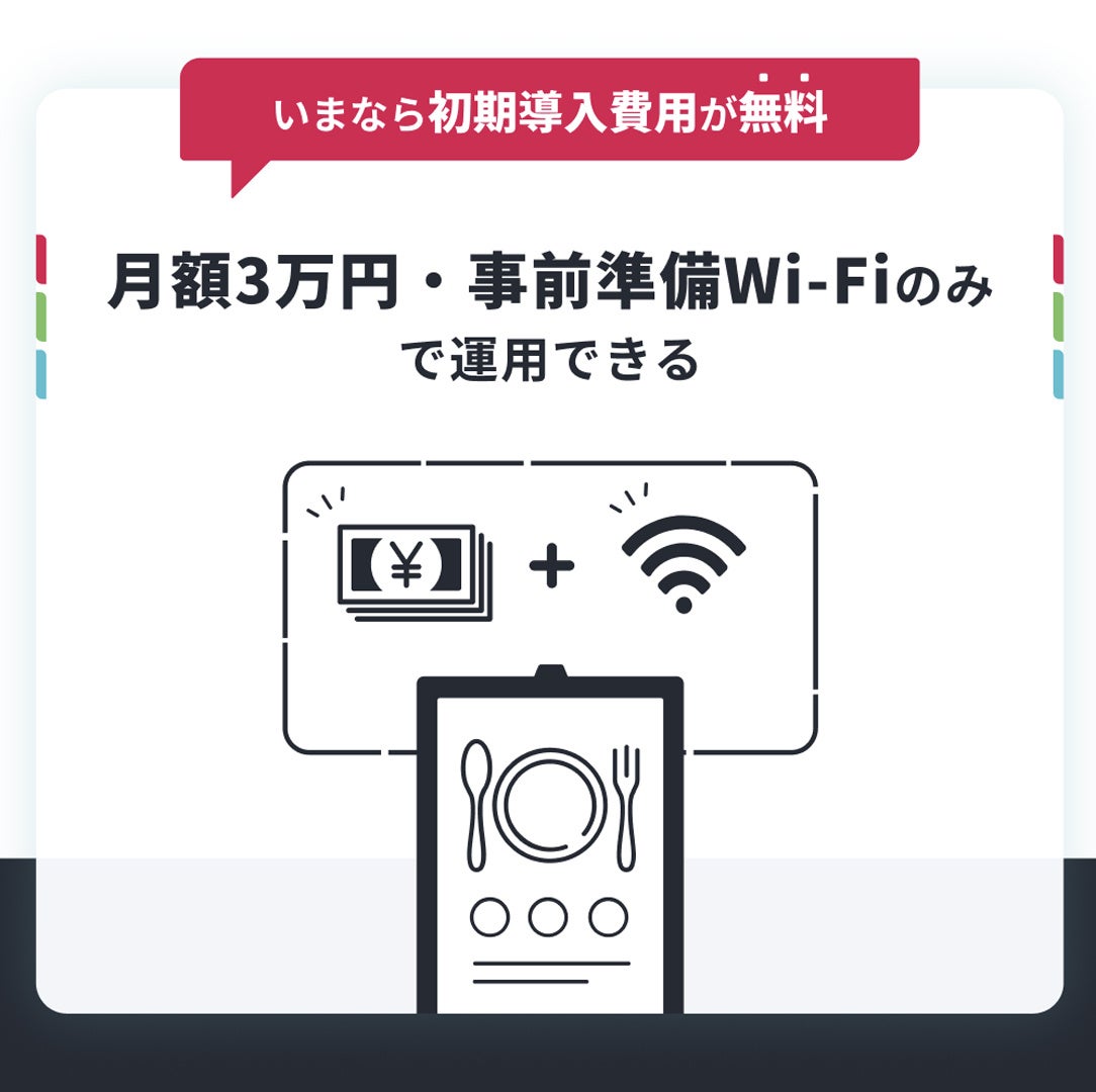 初期導入費は無料。サイネージデバイスとシステムの利用料併せて毎月3万円の支払いのみでご利用頂けます。