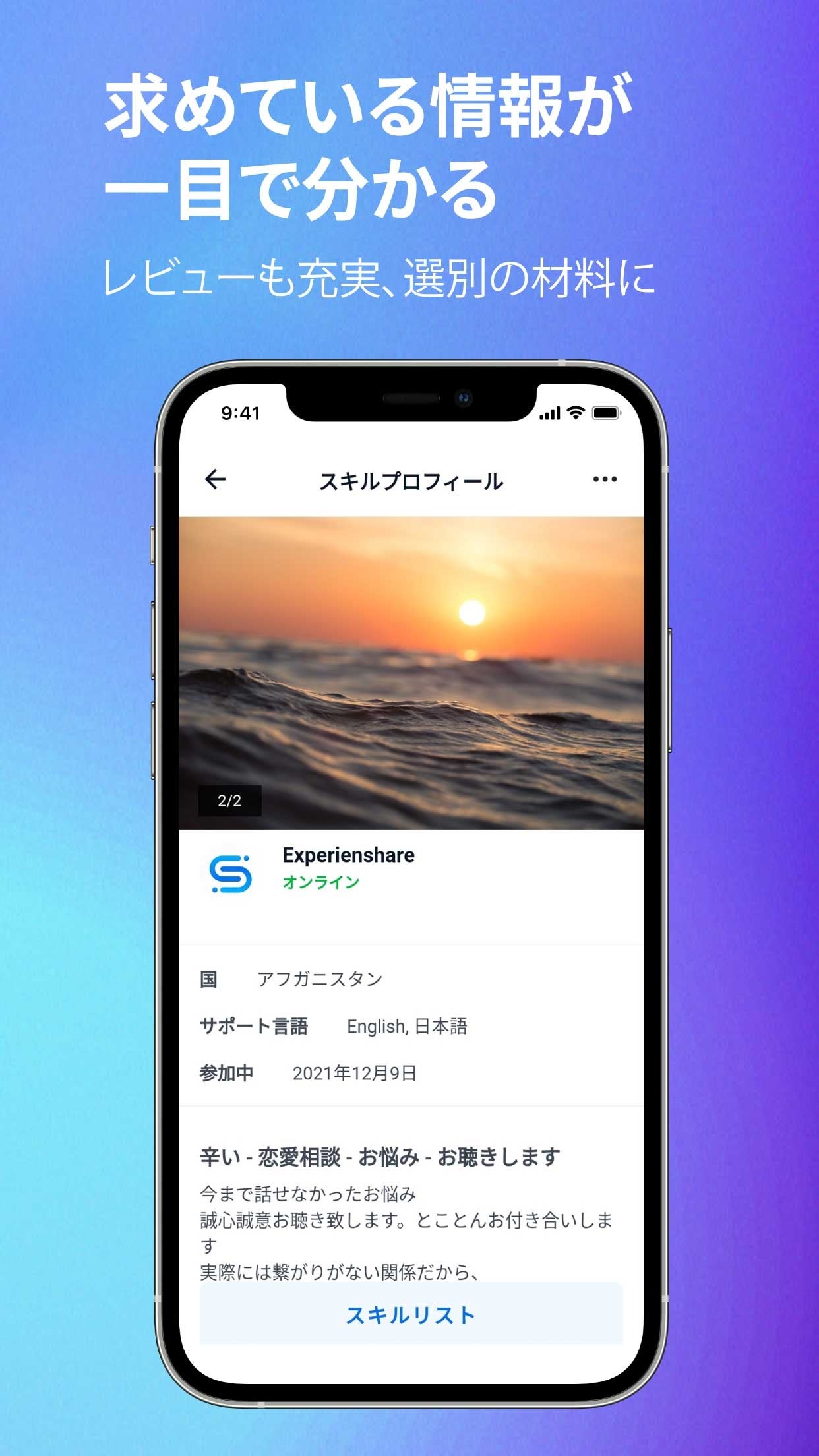 『Experienshare』は、Experiencer (スキル登録者)と相談者が直接声やビデオ通話でコミュニケーションをとることができ、スピーディに相談者の学びに繋げる通話アプリです。