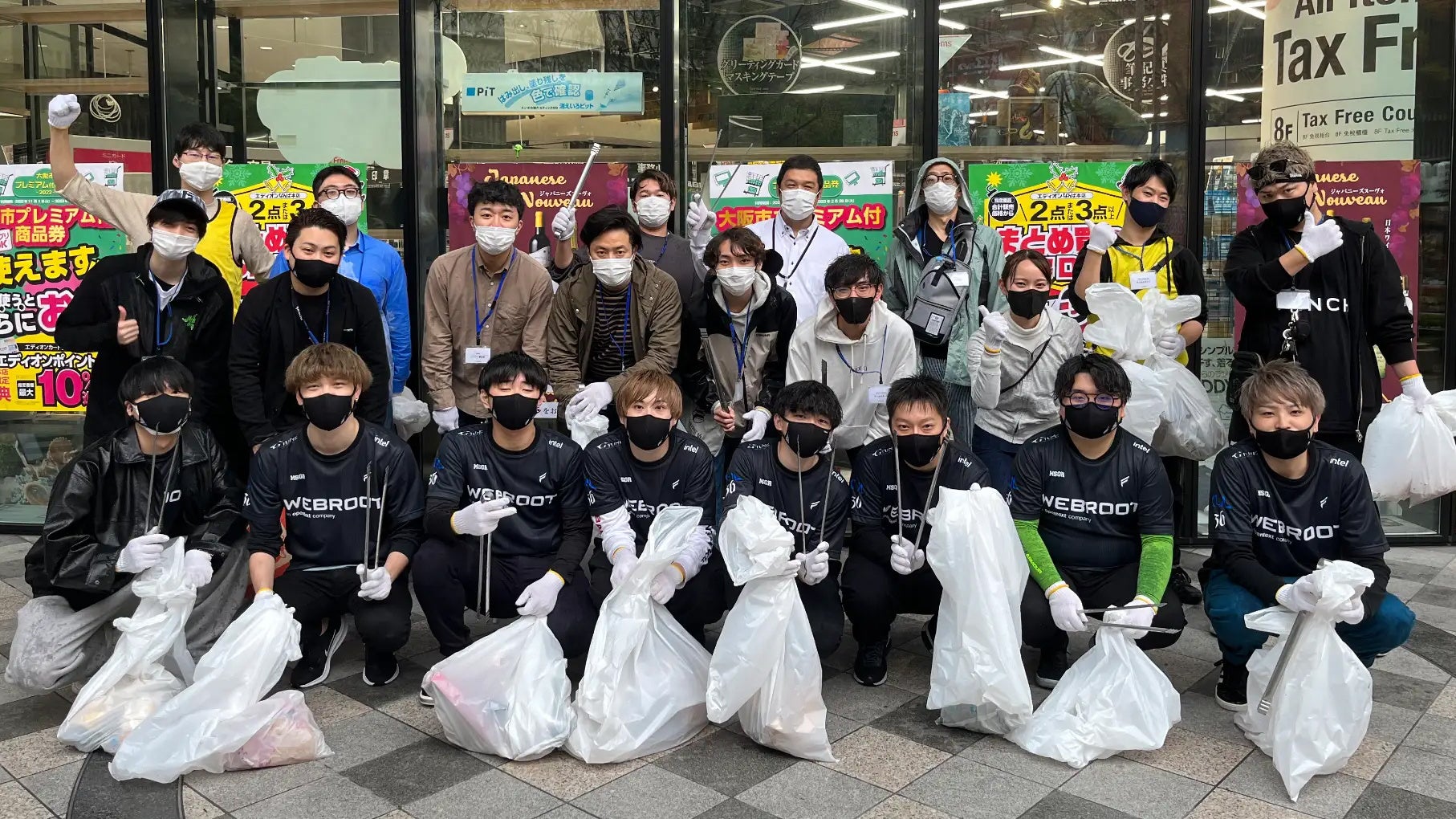 地元を支えるまちづくり団体の活動に協力したいとの想いから、大阪なんばでの地域清掃活動を実施しております。ENTER FORCE.36所属の選手・コーチだけでなく、チーム運営スタッフやパートナー企業様も参加し、まちで一丸となり社会貢献に取り組んでおります。