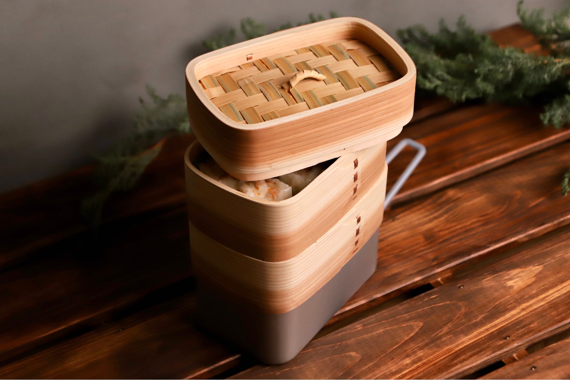 伝統工芸品 曲げわっぱを本格せいろに。飲茶から蒸し野菜まで幅広く調理可能。
