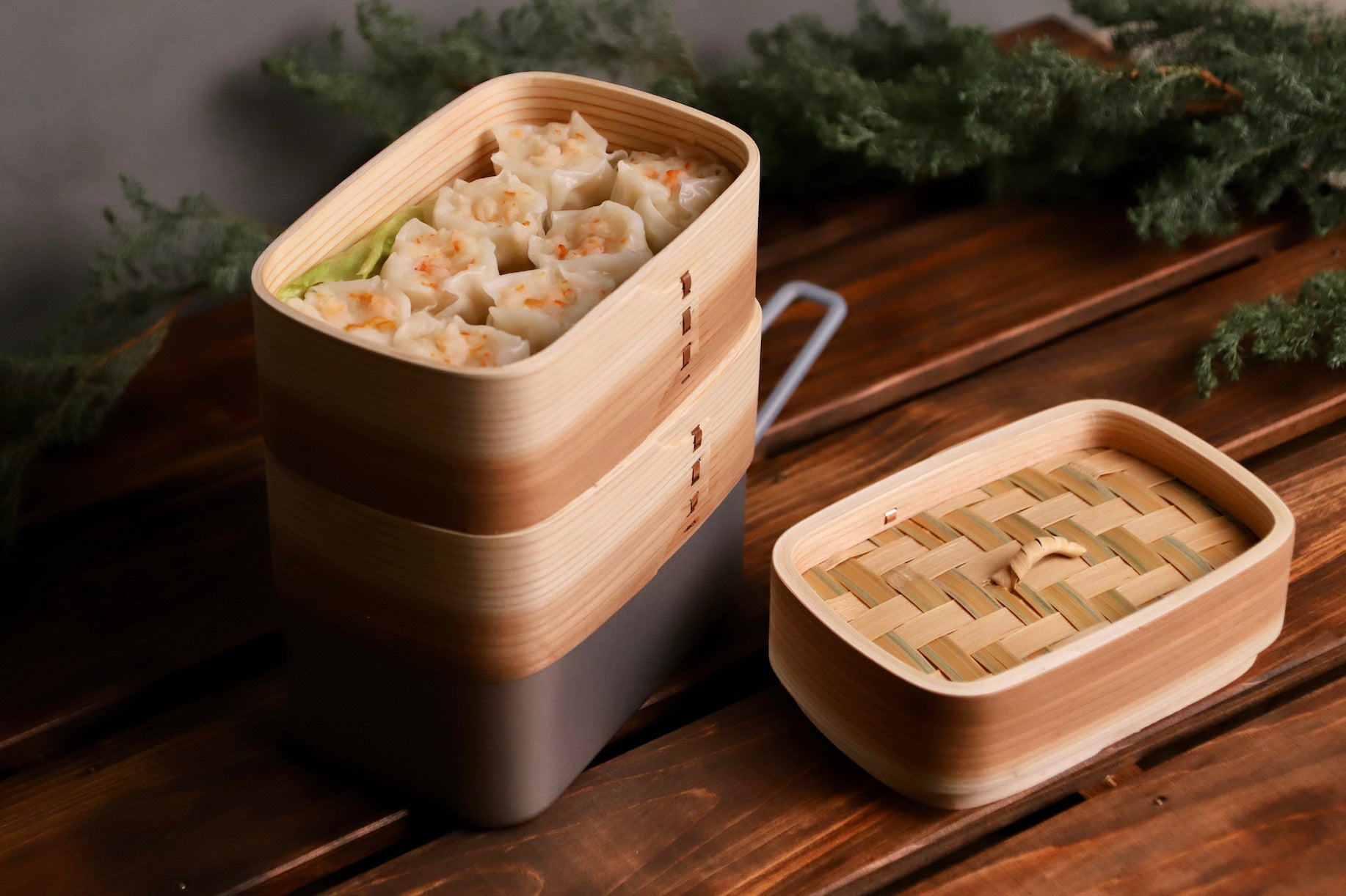 - アウトドアでも本格蒸し料理が楽しめる。点心から蒸し野菜まで調理可能。