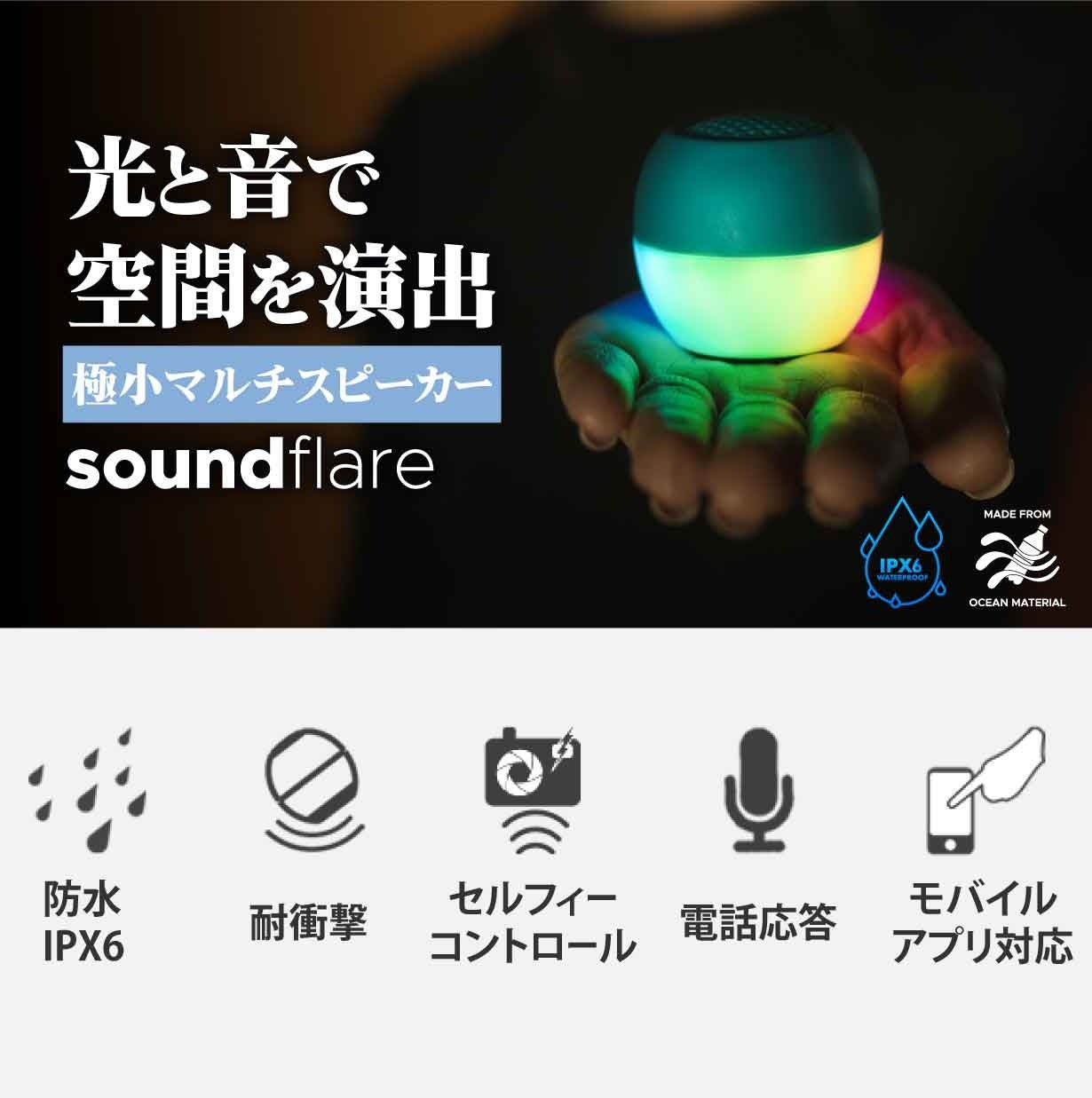 【海から生まれた】光と音で空間を彩る、手のひらサイズの超小型マルチスピーカー『Soundflare』。Makuakeにて先行販売開始!