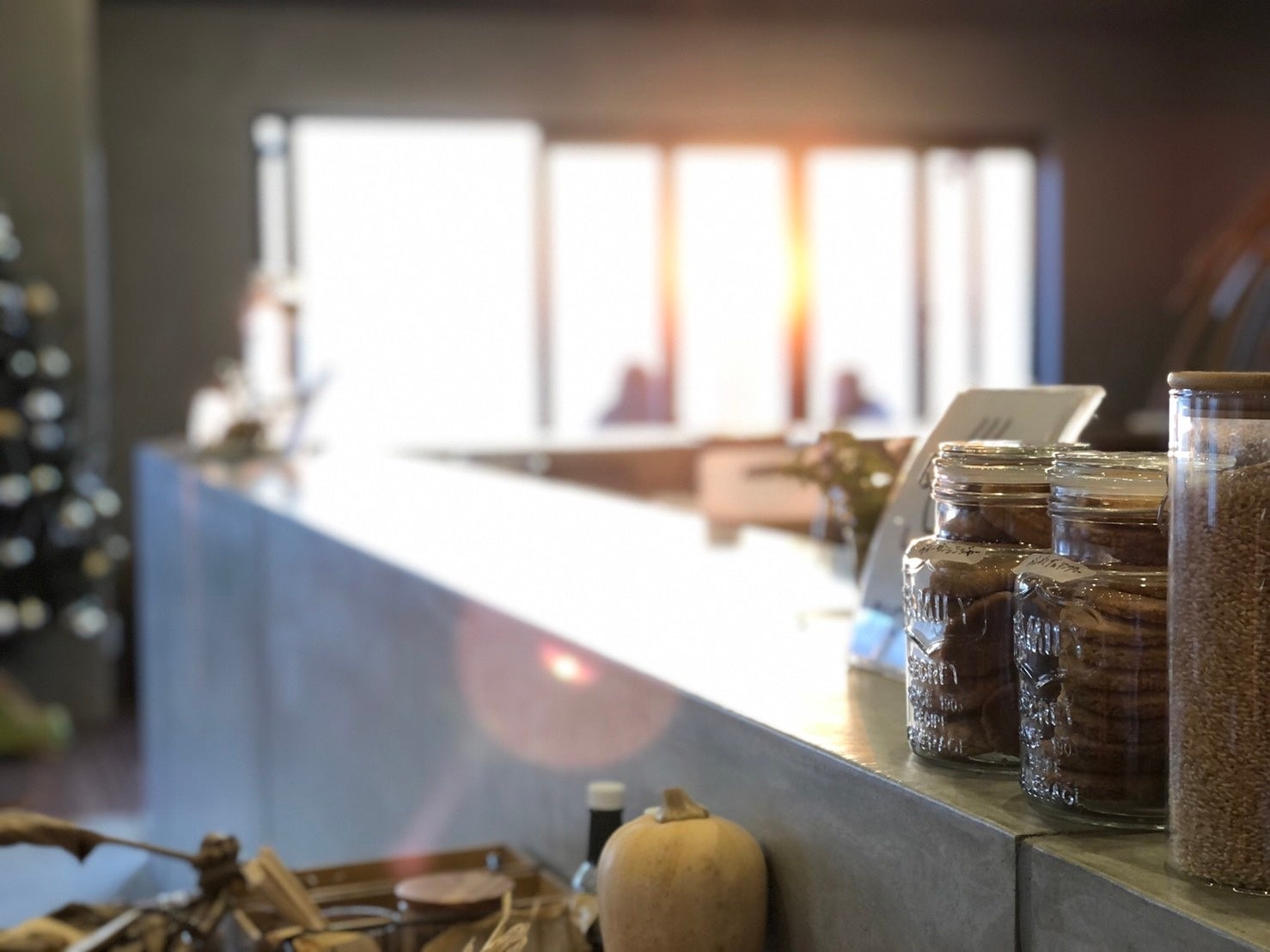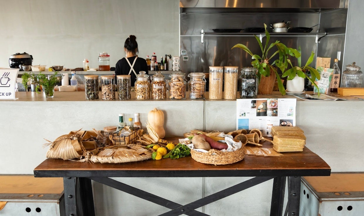 店内ではお店でも使うおすすめの食材やオリジナルグラノーラ、クッキーなどの量り売りや、無農薬玄米、オーガニック野菜やフルーツなどを少量からお試しいただけるショップを併設し、テイクアウトも充実させることでライフスタイル提案型カフェとして、より身近で温かいカフェとなります。