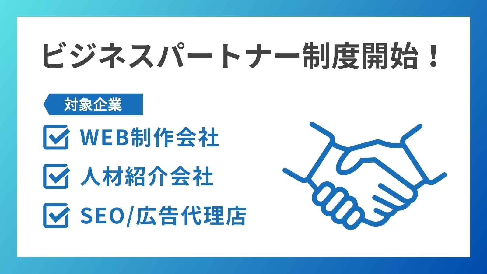 WEB制作会社・人材紹介会社・SEO/広告代理店向け|ビジネスパートナー制度を開始