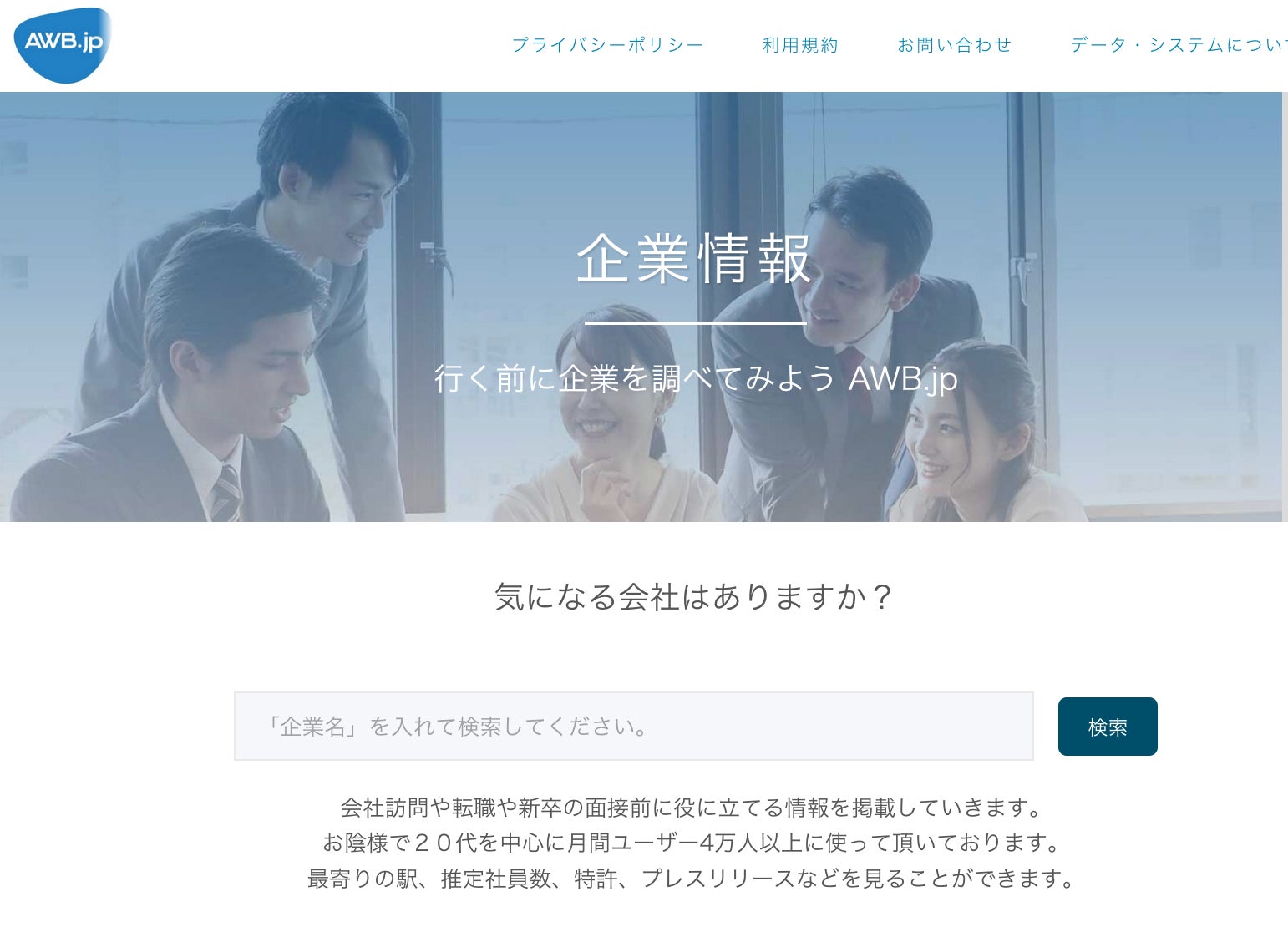 『awb.jp』では、会社訪問や転職、新卒の面接前に役立つ情報を掲載しています。このたび開始する自動生成記事制作サービスにより、以下のような情報をAIが自動的に生成し、提供します。