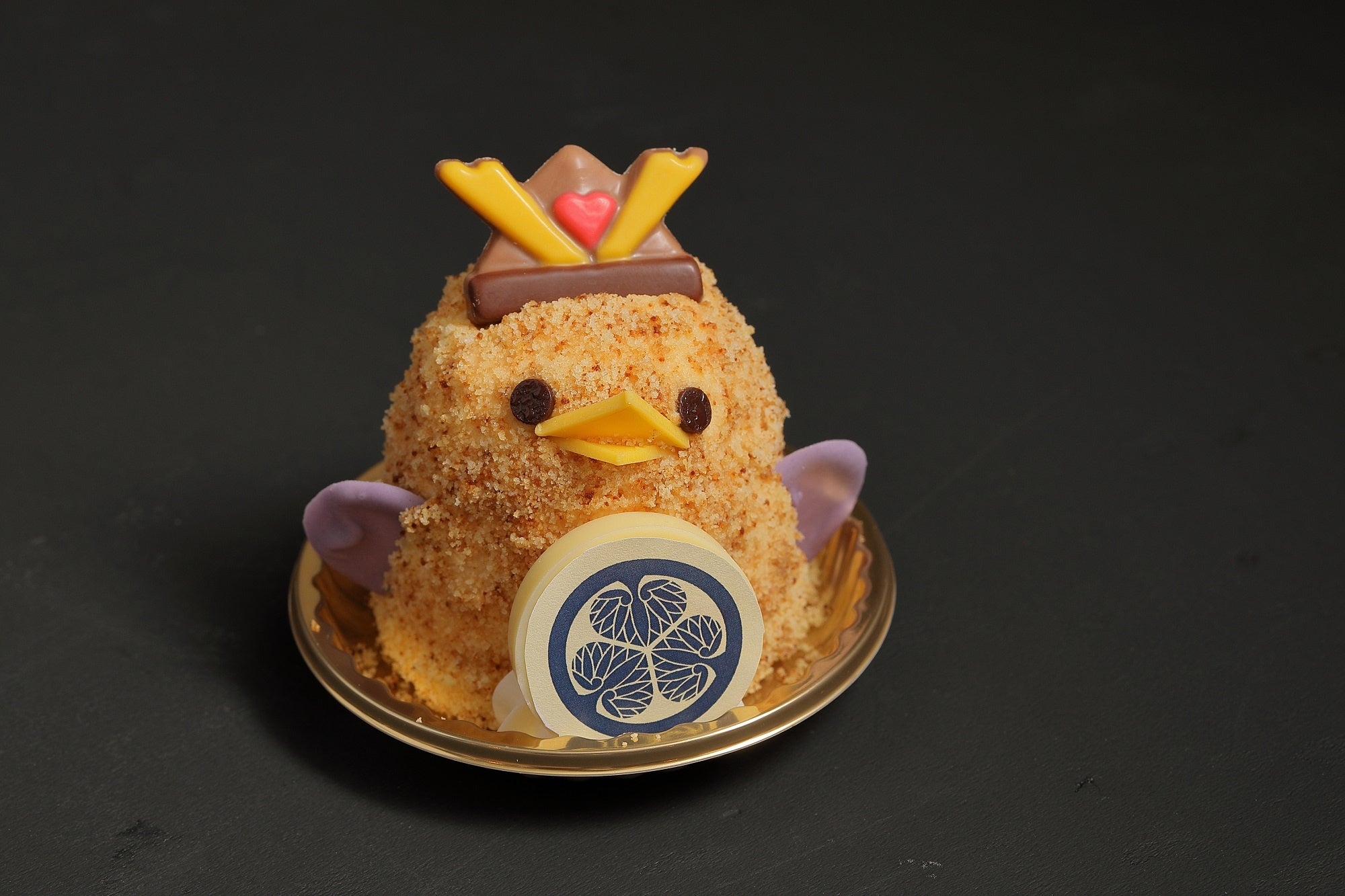 人気のスイーツ「ぴよりん」が勇ましい家康に変身。表面のクラムと中のババロアには家康の好物だった八丁味噌のパウダーをいれて味に奥行きを出しています。