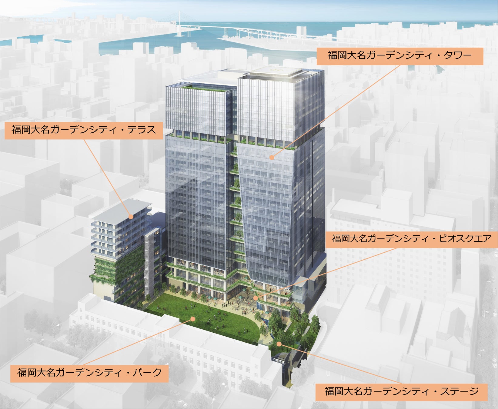 アジアのリーダー都市へと進化を遂げている福岡。「福岡大名ガーデンシティ」は、その 原動力となります。シンボルとなる門を抜けると、そこに広がるのは緑豊かなガーデン。オ フィスやホテル、ショッピング、コミュニティ施設などがつながり、すべての人がボーダレ スに出会える場です。これまでにない交流、融合、共鳴が起き、様々な可能性が生まれてき ます。ビジネスには成長と成功を。ライフスタイルには感度の高い体験を。この両輪が加速 していくことで、次なる新しい福岡がここからはじまります。