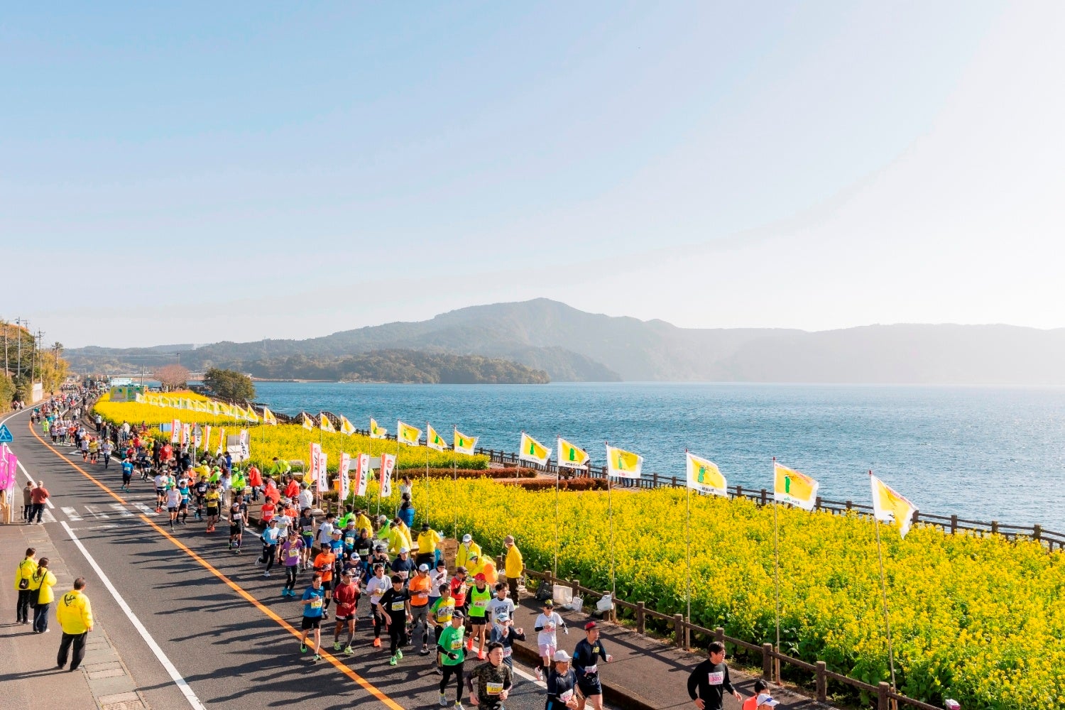 菜の花満開!早春の指宿路を駆ける!2024年1月14日(日)開催の『第41回 いぶすき菜の花マラソン』の参加者募集を8/1(火)より開始します。