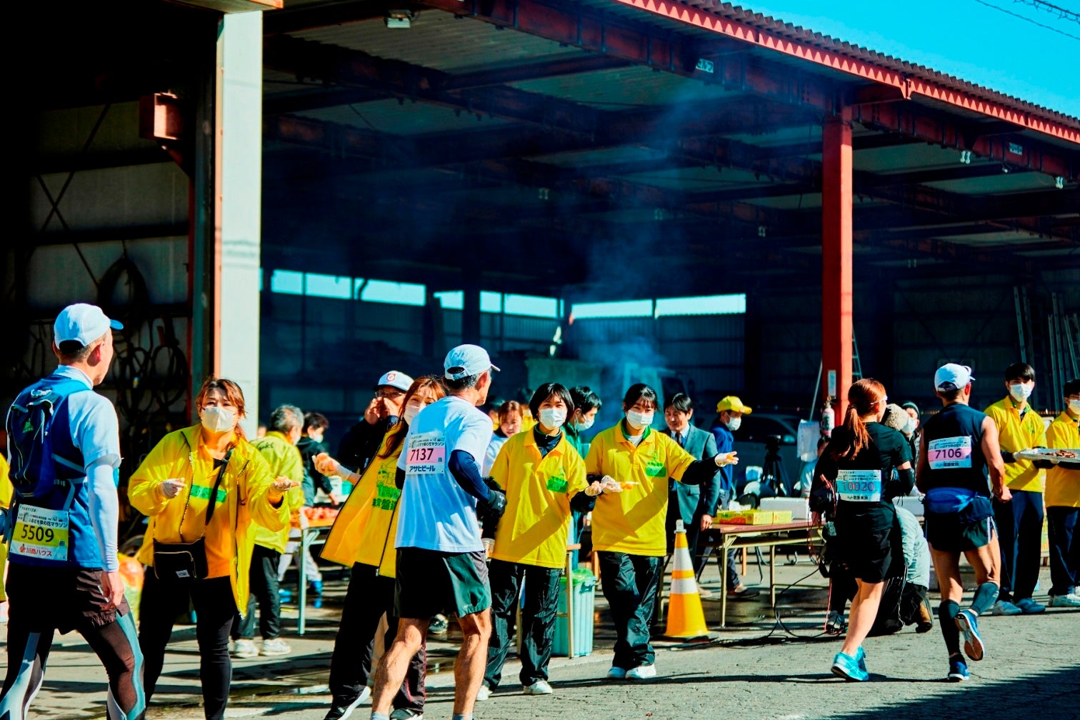 沿道では、市民自ら準備された指宿名物の鰹の腹皮やさつまいもなどの振る舞い、ゴール後も、名物「茶節」の振る舞いや温かいうどんまたはそば、ぜんざい、おにぎり、蒸かし芋などが準備されており、身も心も温まってお帰りいただけるよう準備しております。
