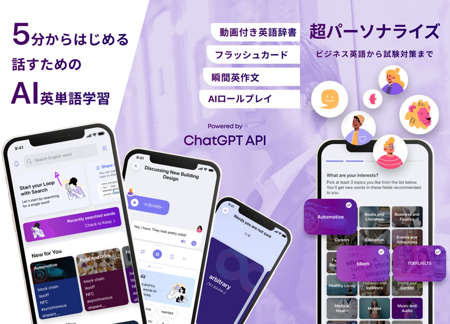 話すためのAI英単語学習!ChatGPT APIを搭載した新感覚の英語学習アプリ「Loop English」β版のリリースを発表。