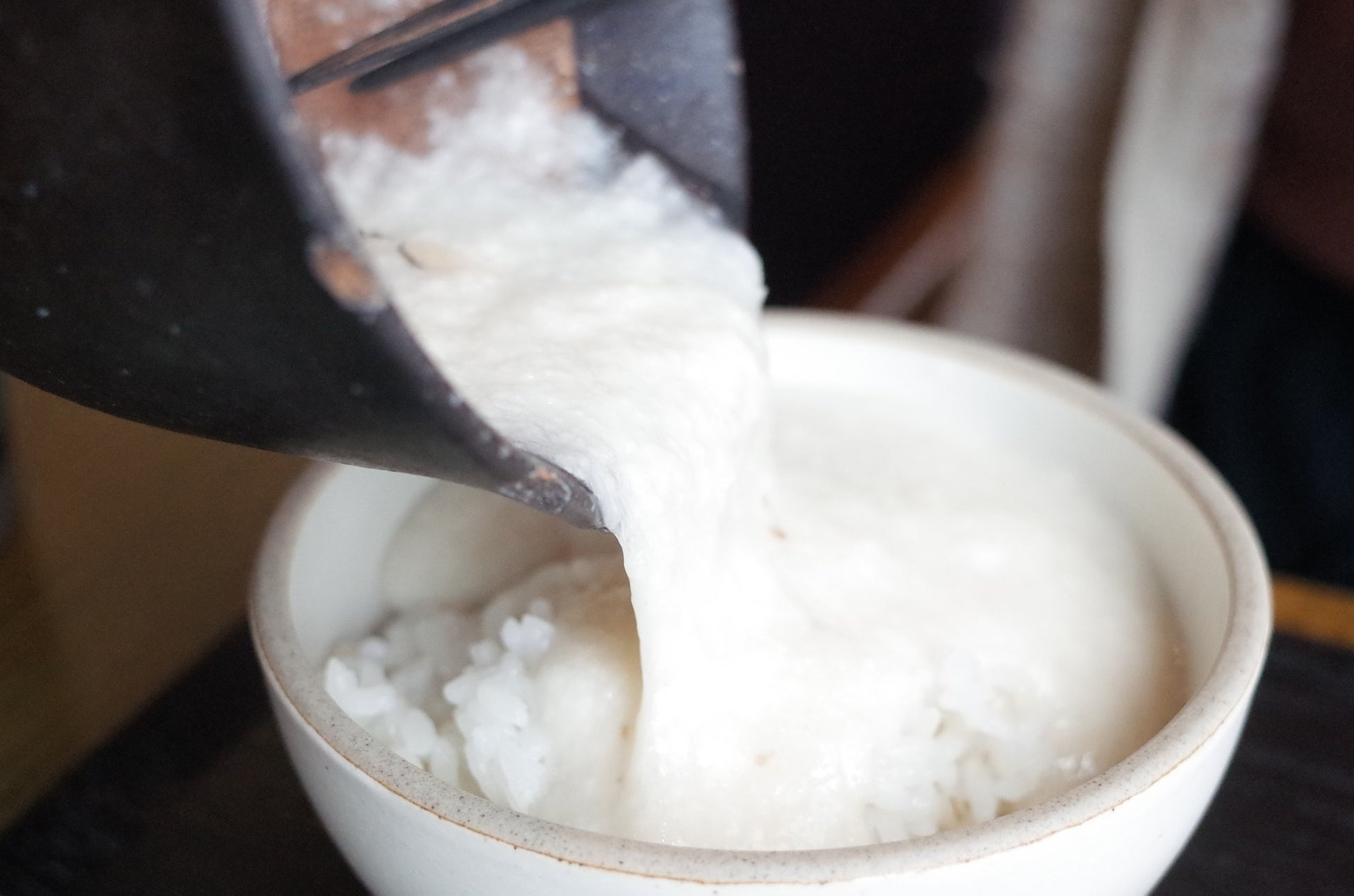 麦飯は毎月変わる産地で、その季節の美味しい御飯をお米マイスターがセレクトし用意してくれます。とろろは群馬県の契約農家さんから仕入れる大和芋を泥付きで直送してもらい、手間をかけ直前におろして提供してくれます。