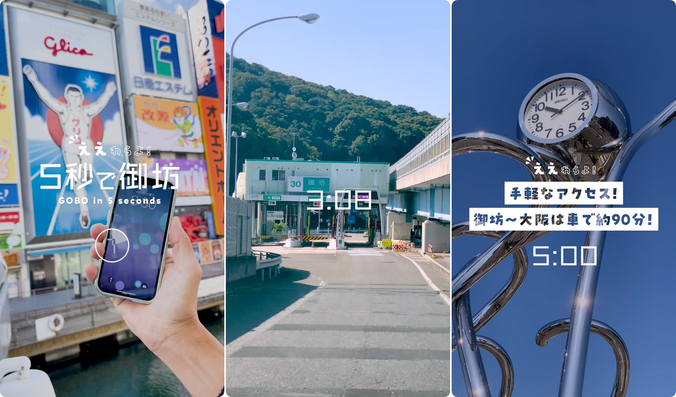 参加した市民から「人」や「地域」とのつながりを広げることで、同市の強みや魅力を市民視点で見つけ出し、SNS用のショート動画で御坊市の魅力を伝える「5秒で御坊」の動画を制作、また参加者それぞれのショート動画を再編集し、シティプロモーションの本編動画「ええわらよ!御坊市」を制作。12月1日に同時一斉公開しました。