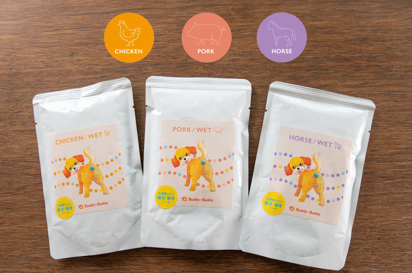 【バディバディ腸活ウェットフード (チキン、ホース、ポークの全3種類)】